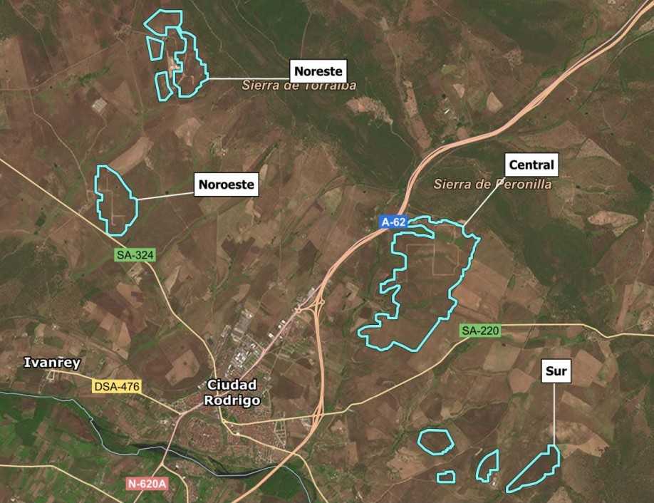 Este sistema tiene como espacio de implantación cuatro zonas diferentes: 2 Zonas Norestes (próximas a la SA 324 y a la Sierra de Torralba), 1 zona central (colindante con la A-62 y la más visible desde la muralla) y 1 zona sur (ubicada en la dehesa de Casasola).