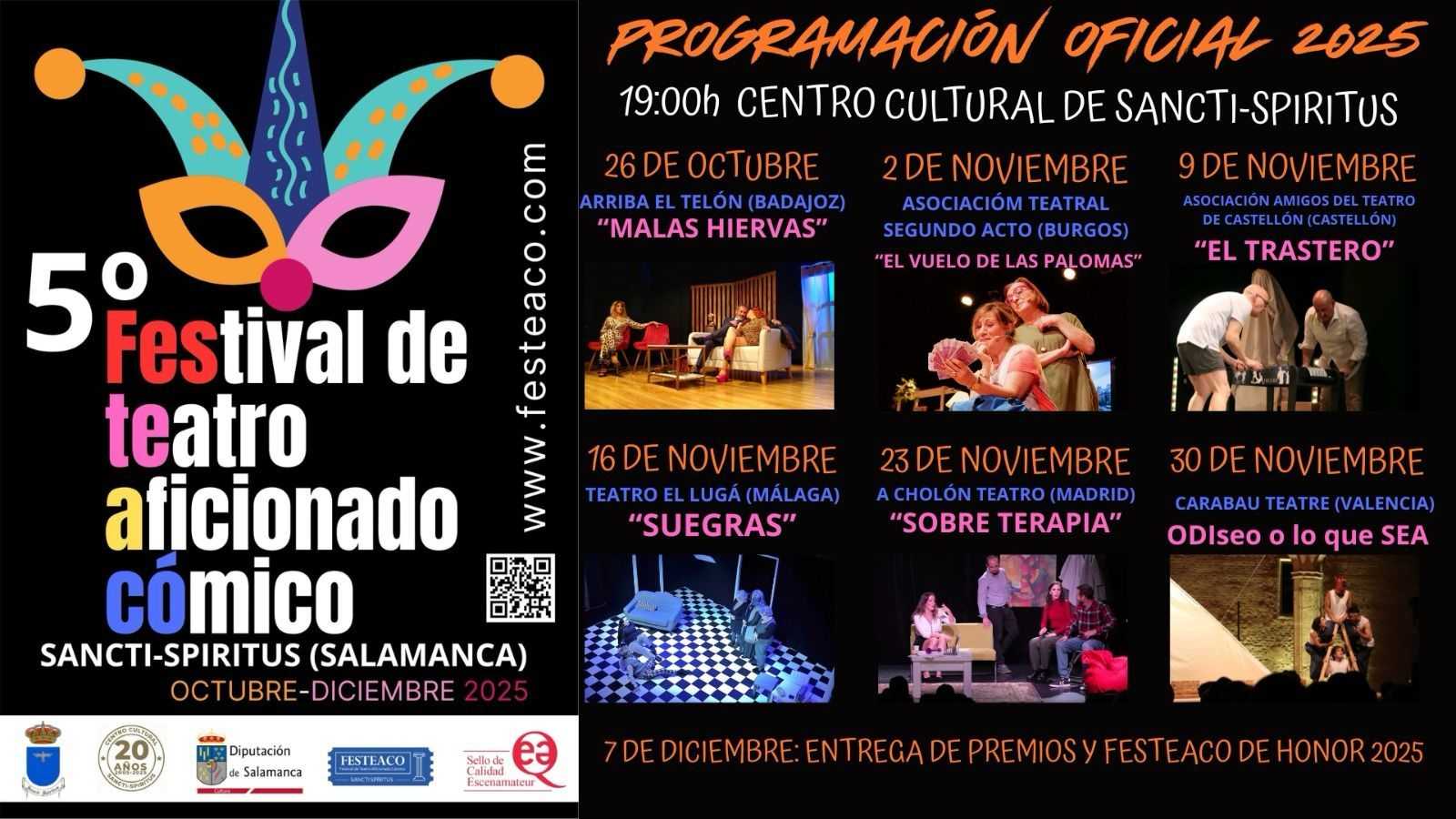 El festival, que celebrará sus funciones entre los meses de octubre y diciembre, reúne cada año a grupos de teatro aficionado nacionales e internacionales, con especial presencia de compañías procedentes de Portugal, favoreciendo así la creación de lazos culturales y artísticos entre ambos países. Además de su programación teatral, el certamen fomenta el intercambio entre los grupos participantes y el público local, convirtiendo a Sancti Spíritus en un espacio de encuentro y convivencia cultural.