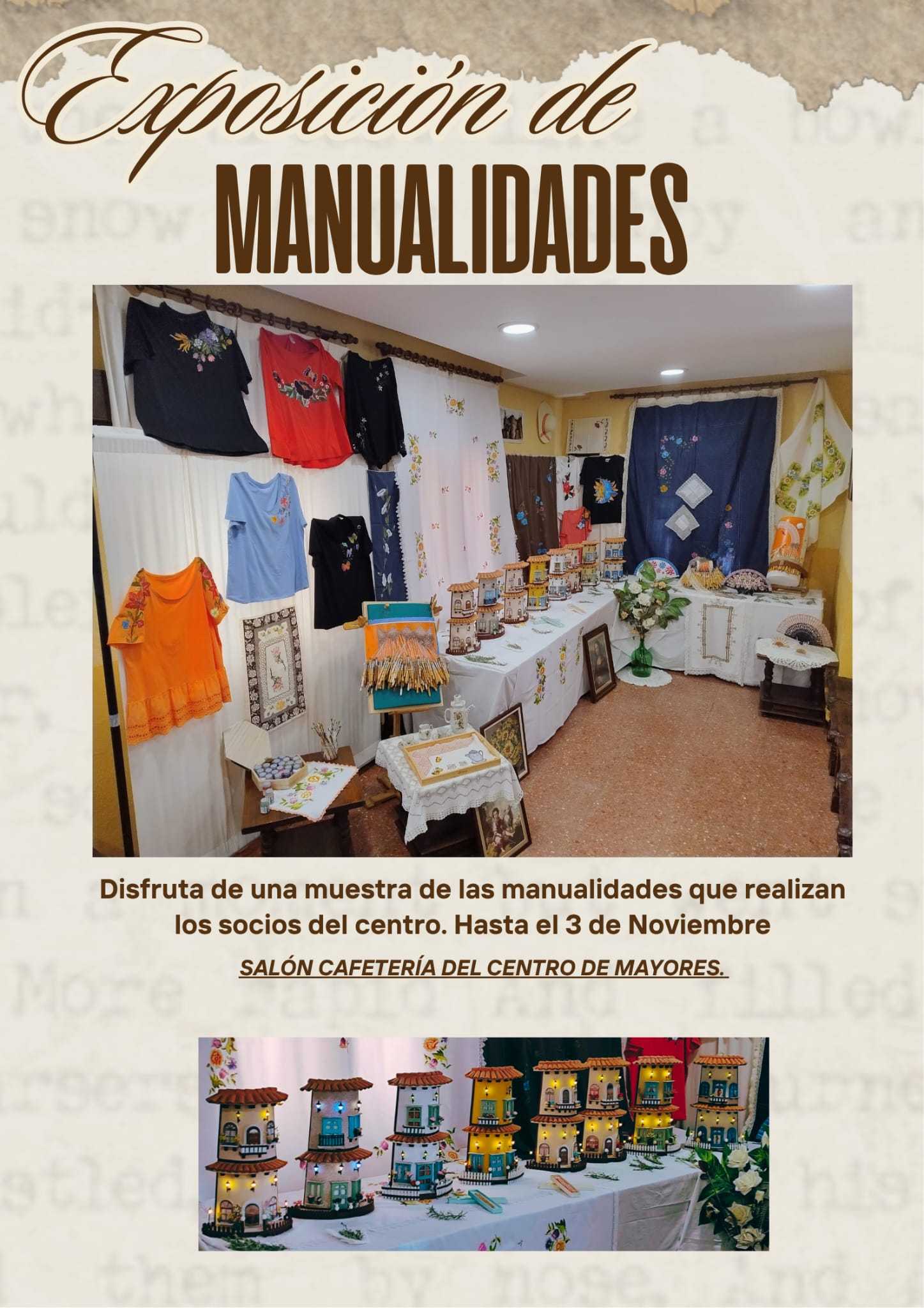 Además el centro cuenta hasta el tres de noviembre con una muestra de las manualidades que han realizado los socios de los diferentes grupo autónomos del centro (Pintura en tela, Bolillos y Manualidades)