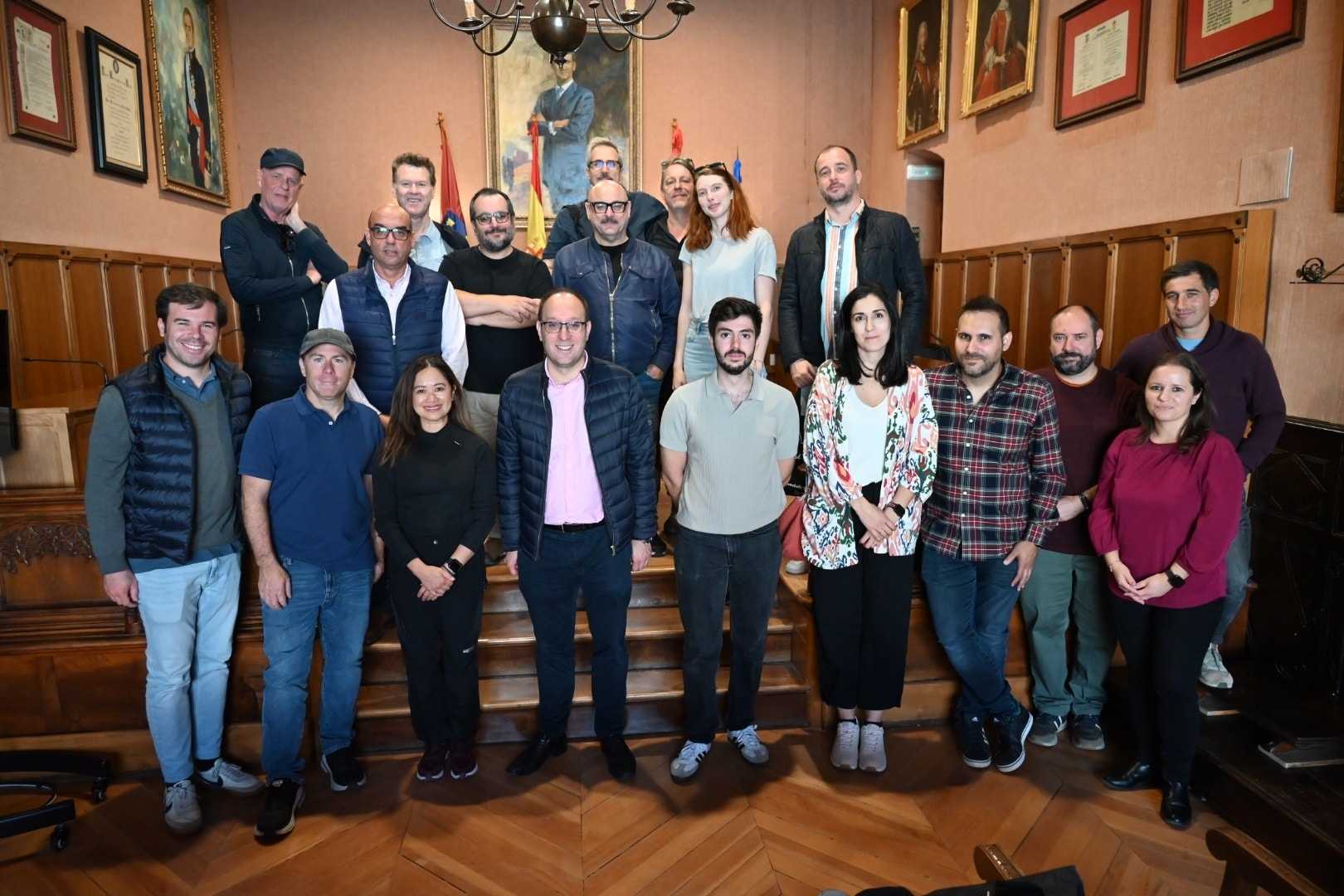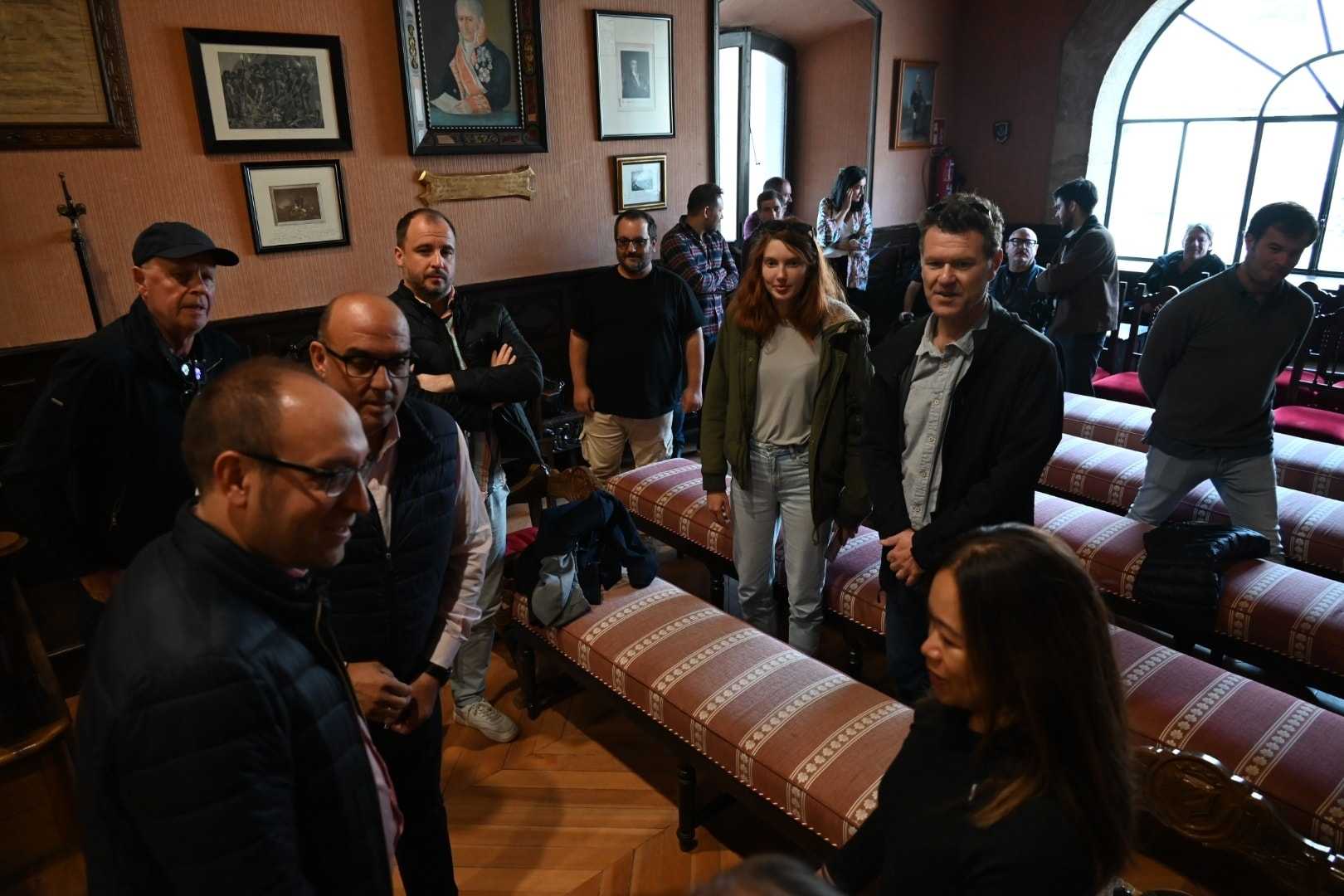 El alcalde Marcos Iglesias y el teniente de alcalde, Ramón Sastre recibieron este domingo en el salón de plenos a un grupo de localizadores cinematográficos en una visita a Ciudad Rodrigo promovida por la Castilla y León Film Commission y la productora mirobrigense Stellerum Films