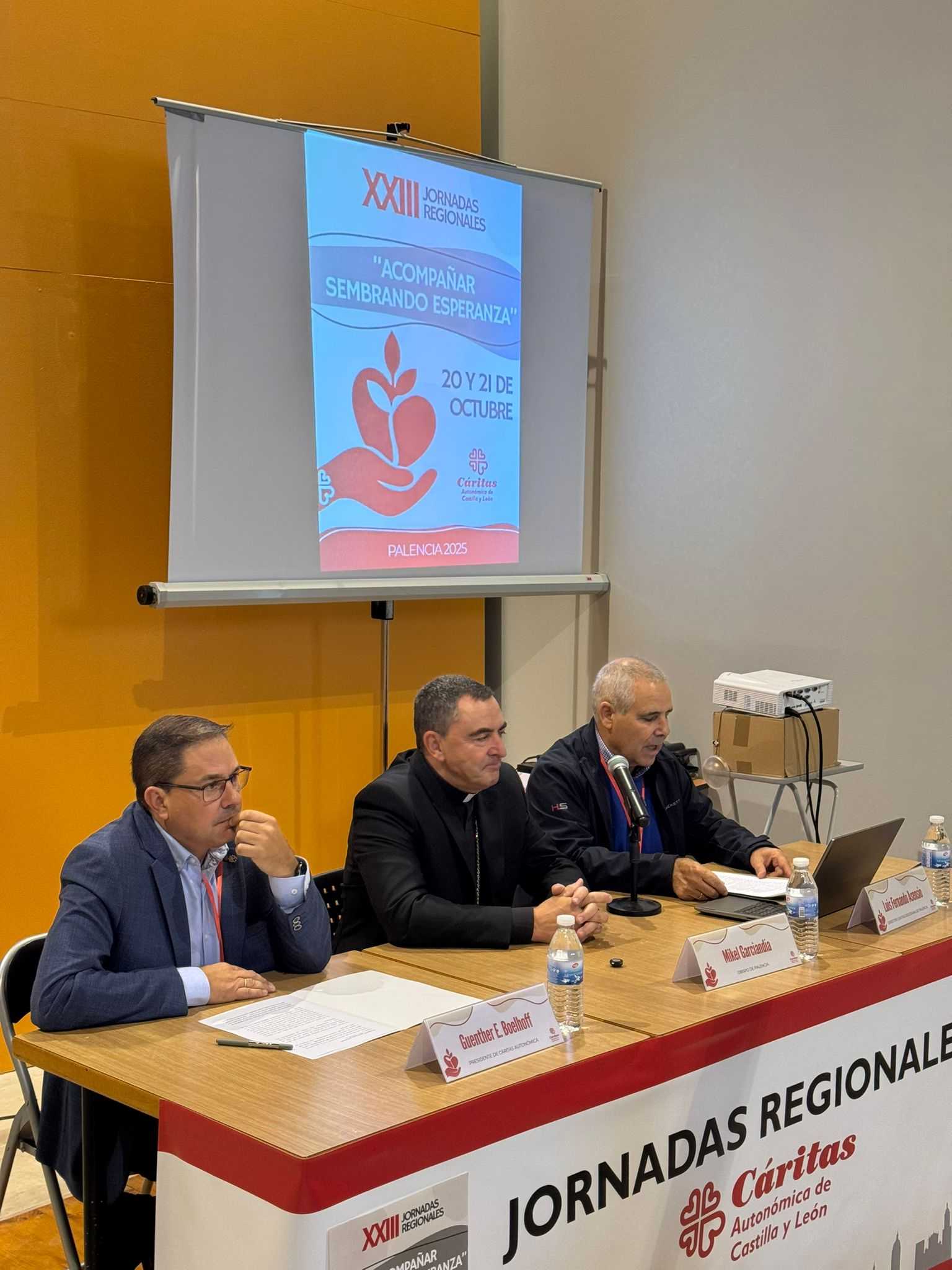 El acto inaugural contó con la participación del obispo de Palencia, Mons. Mikel Garciandía, el presidente de Cáritas Autonómica, Guenther E. Boelhoff, y el director de Cáritas Diocesana de Palencia, Luis Fernando Asensio.