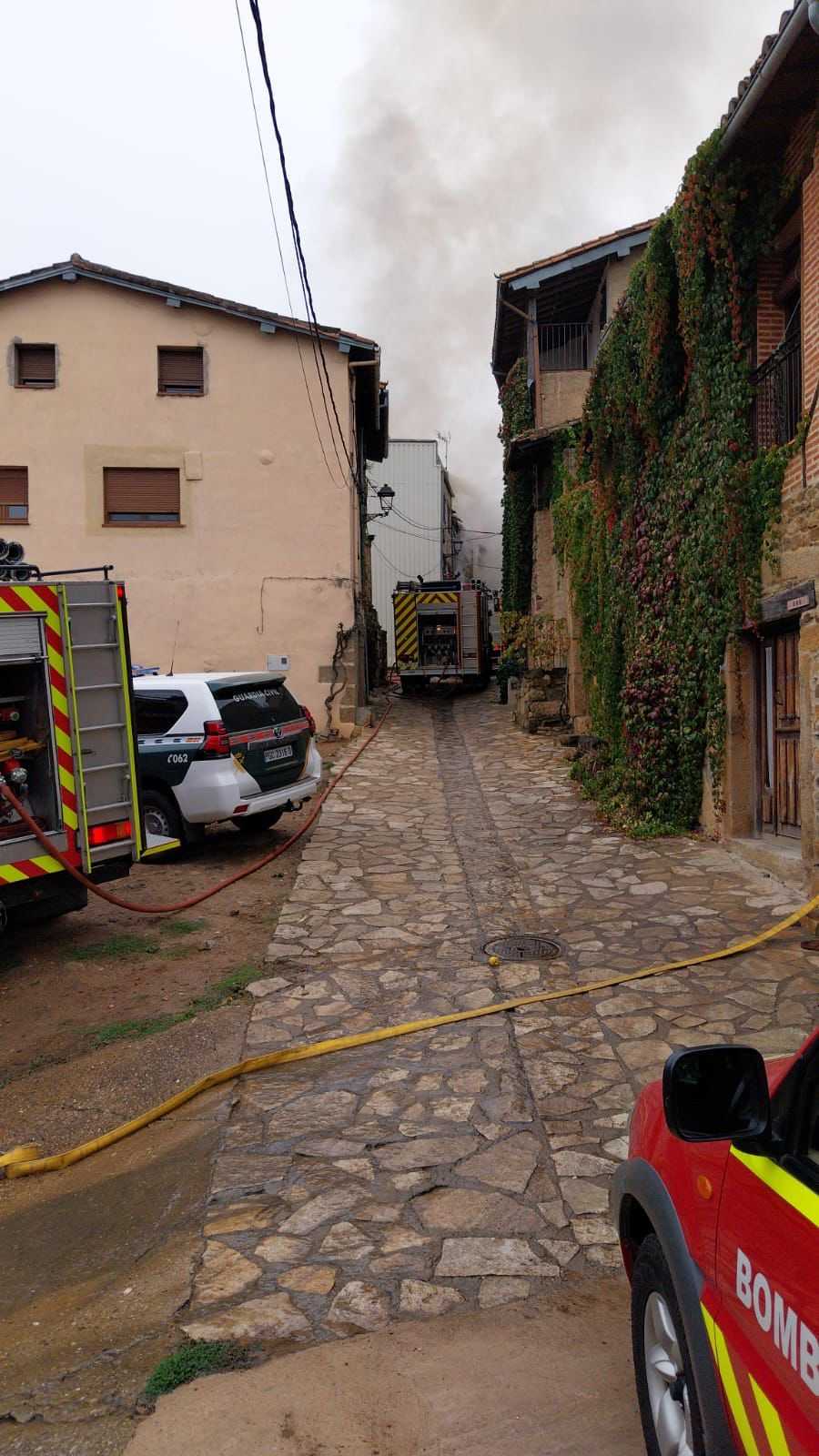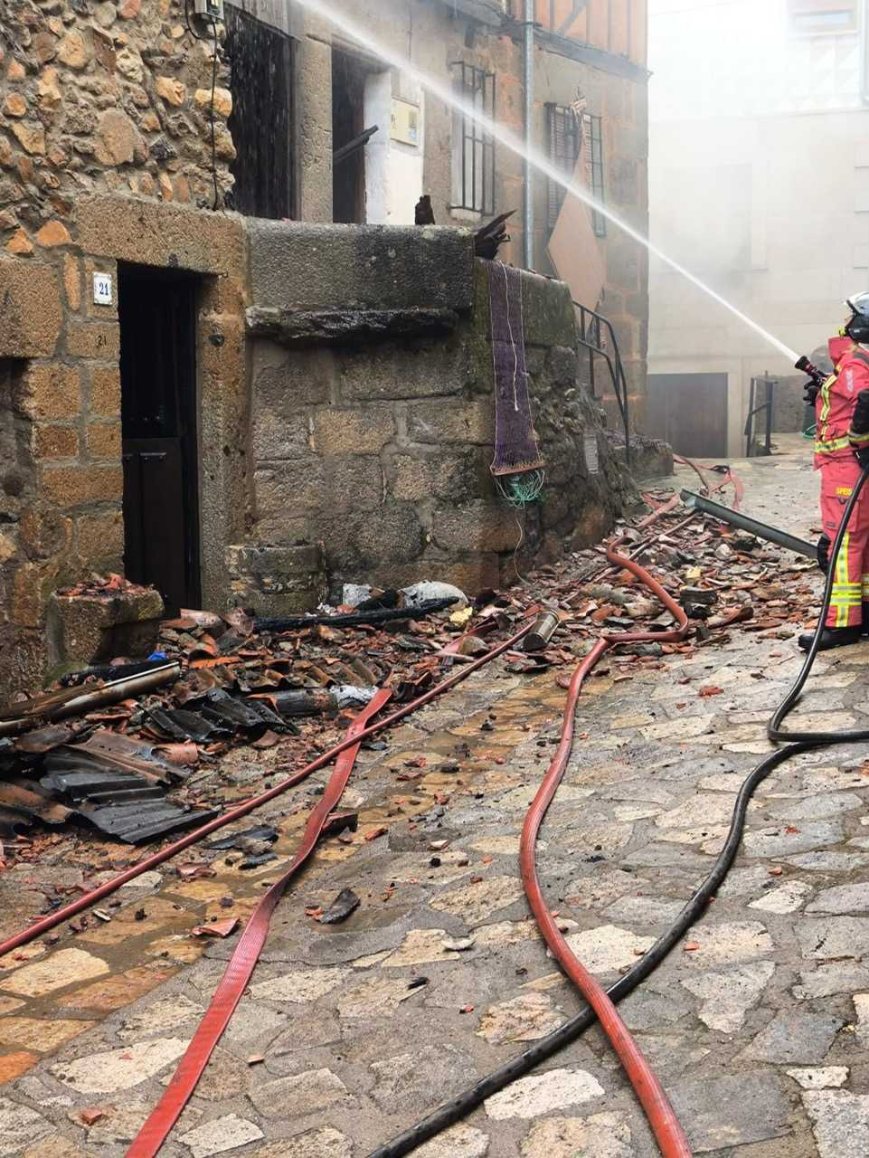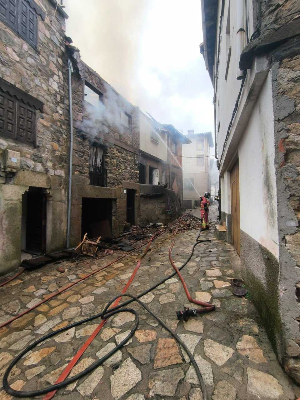 Junto a bomberos de Tamames, Béjar y Guijuelo, 15 efectivos y 6 dotaciones de bomberos en total para extinguir un fuego que ha afectado a cuatro viviendas