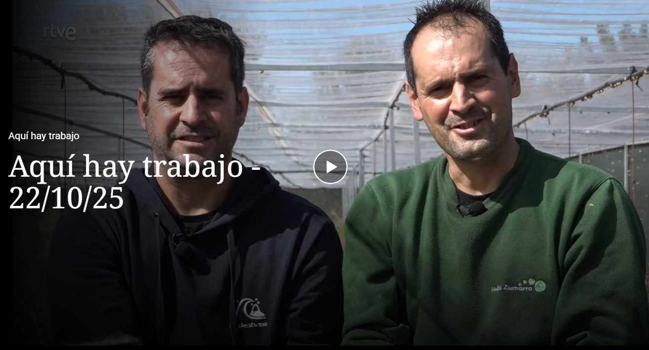 El programa «Aquí hay trabajo» de La 2 ha dedicado hoy un reportaje a la granja de caracoles de los hermanos Jorge y Raúl Benito Pastor en Ciudad Rodrigo. Puedes ver este programa pulsando la imagen (minuto 3:55) https://www.rtve.es/play/videos/aqui-hay-trabajo/22-10-25/16781195/