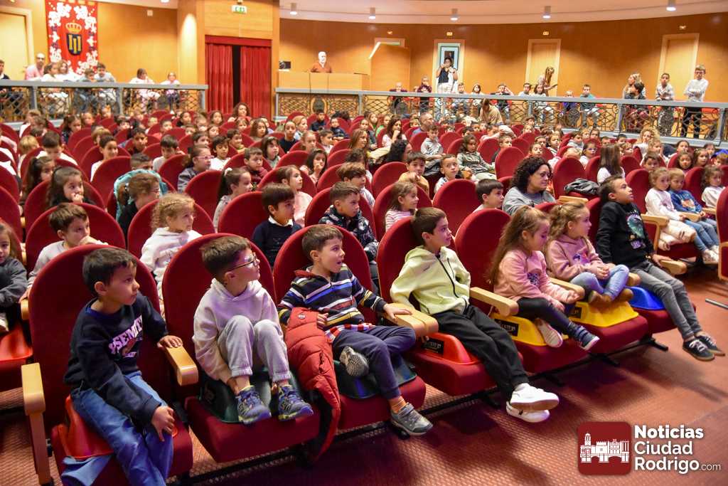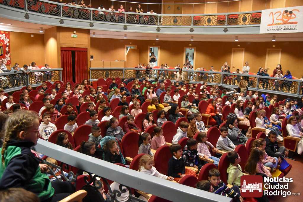 Los colegios de Ciudad Rodrigo y comarca disfrutan de «El Gato con botas de agua» en el Teatro Nuevo