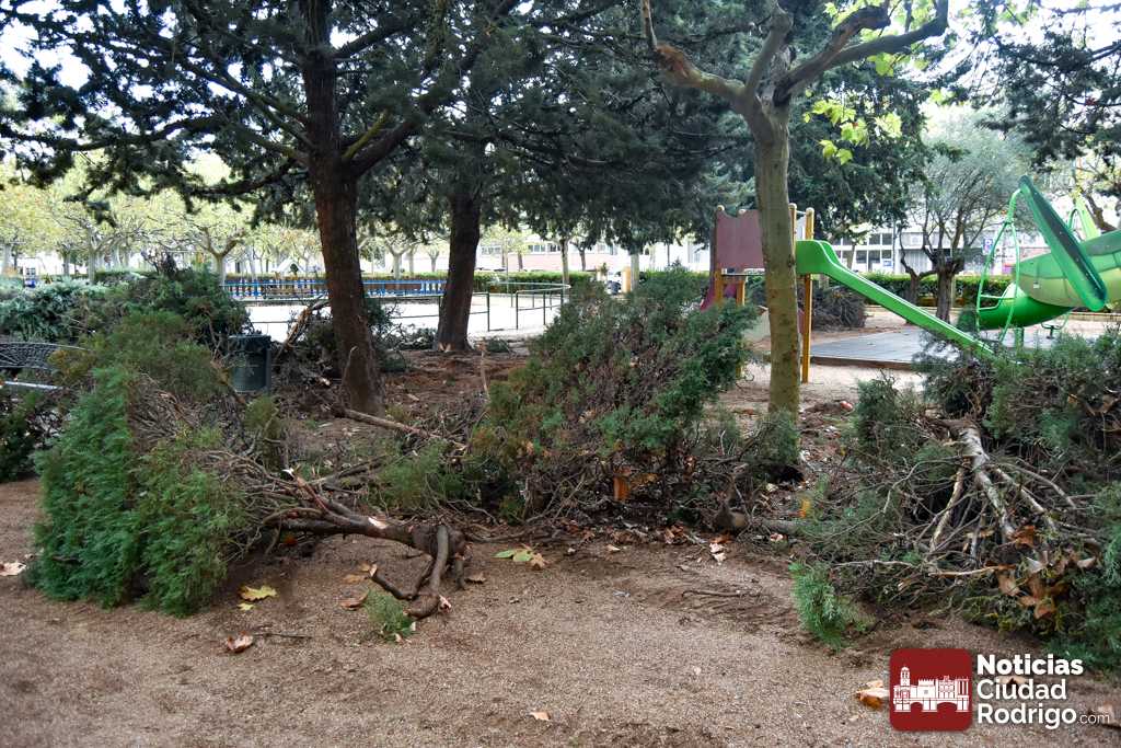Esta medida se toma de cara a la instalación de varios juegos nuevos en dicho espacio, algunos de gran tamaño, así como para ganar amplitud en el propio campo visual de los usuarios del mismo. También se han hecho varias zanjas en una de las zonas colindantes a la calle Laguna para la instalación de aparatos de ejercicio y movilidad destinados a personas de la tercera edad, que estará instalado ya a principios de la semana que viene.