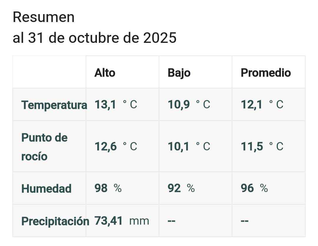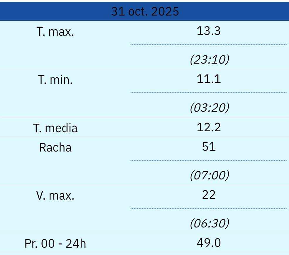 Y es que El Rebollar, en la provincia de Salamanca, siempre es una zona tradicionalmente muy lluviosa. Estos son los datos de Navasfrías en el último día del mes de octubre, según AEMET: