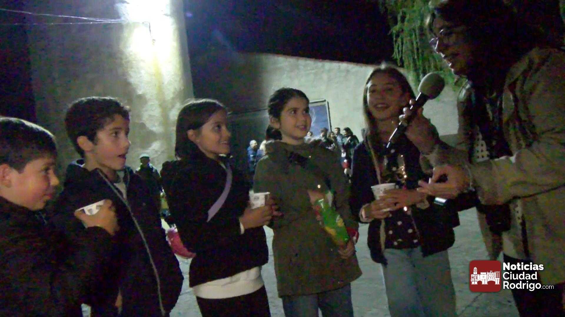 Hablamos con Francisco y Adrián que nos recordaron cómo se celebraba este Día hace más de sesenta años, también con: Irene una joven que baja uno de estos ramos encendidos; Almudena, concejal en el Ayuntamiento de Barquilla; Ana de la asociación «La Flor del Campo», entidad que organiza esta fiesta; Javier, asistente a la fiesta desde Puerto Seguro; y con algunos de los niños y niñas que portando antorchas precedían a la comitiva de los ramos desde el monte.