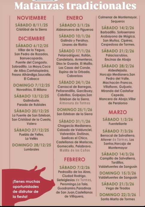 Villar de la Yegua, Navasfrías, La Fuente de San Esteban, Puebla de Yeltes, Diosleguarde, El Maíllo, Saelices y Ciudad Rodrigo entre os pueblos del circuito de Matanzas Tradicionales