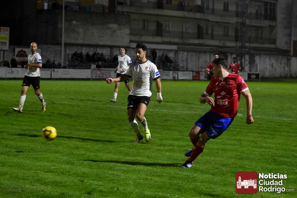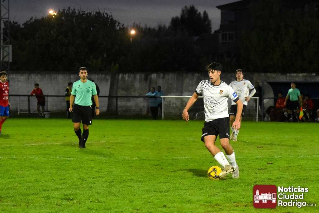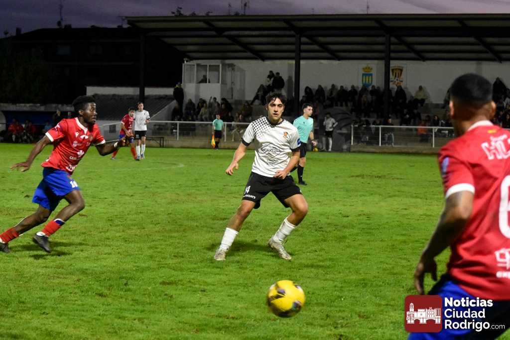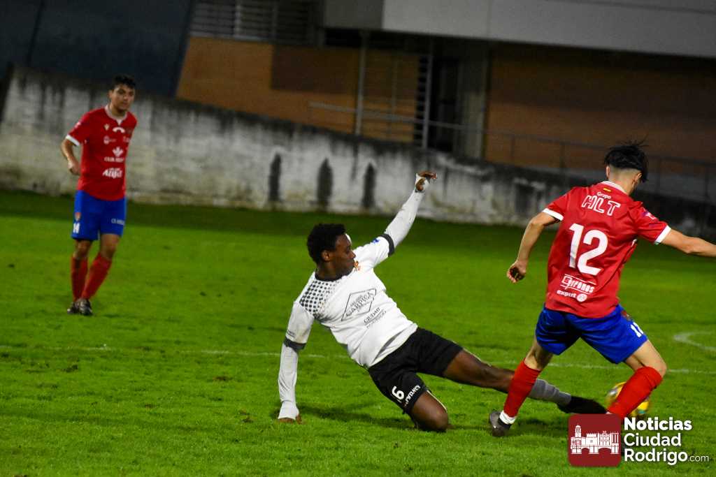 El primer tiempo inició con un juego relativamente igualado, con más iniciativa en ataque por parte del Ciudad Rodrigo CF, pero sin llegar a generar superioridad. Muy propio de partidos entre rivales de la zona alta como era el caso y en el que destacó un balón al palo de Víctor Abajo. La cosa se desató en el 29´ cuando Yeray Belotti adelantó a los zamoranos con un remate sobre un césped que se encontraba muy deteriorado. En el resto Albert Diatta fue de los más activos arriba, pero no encontró puerta.