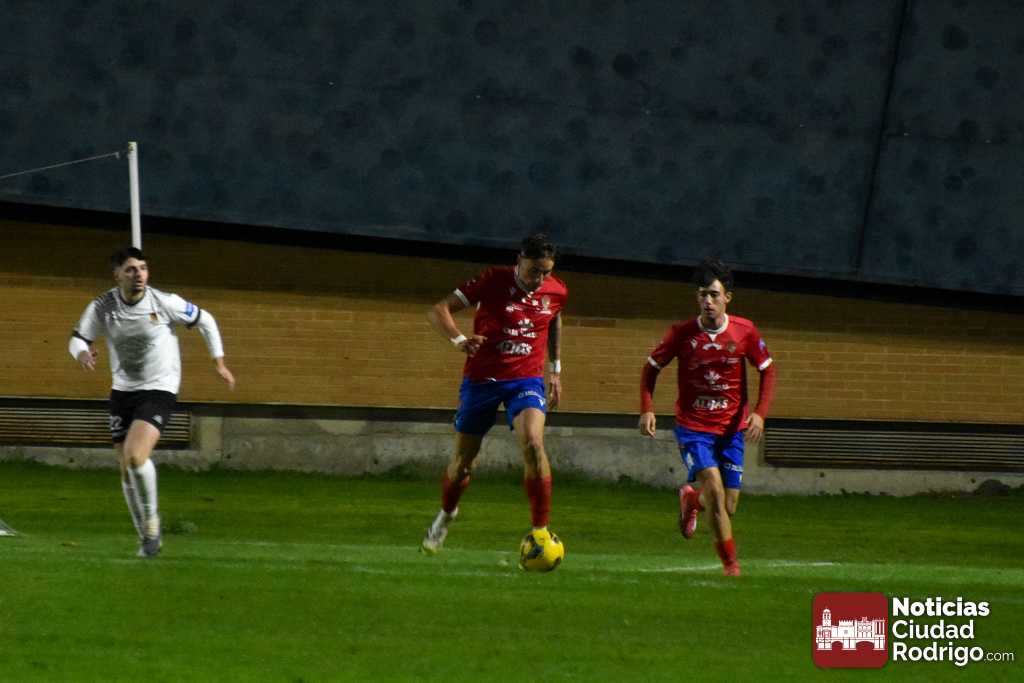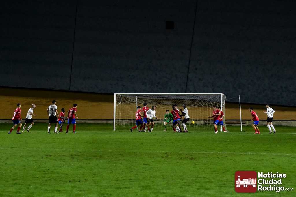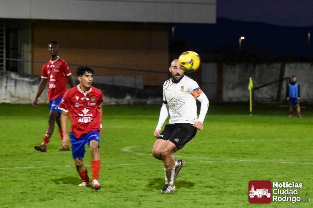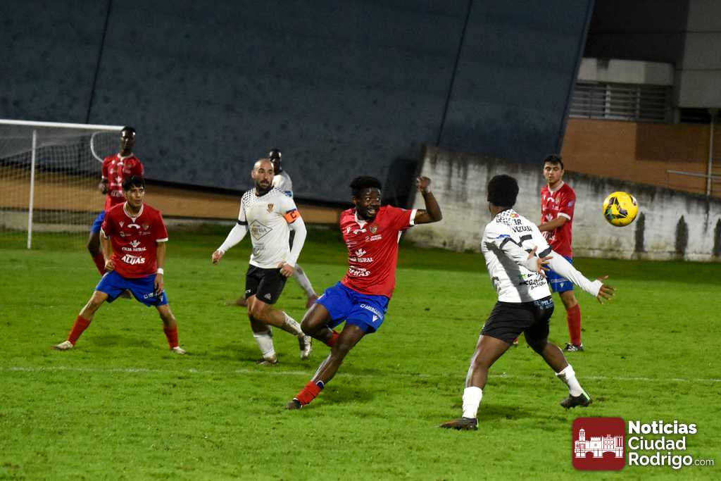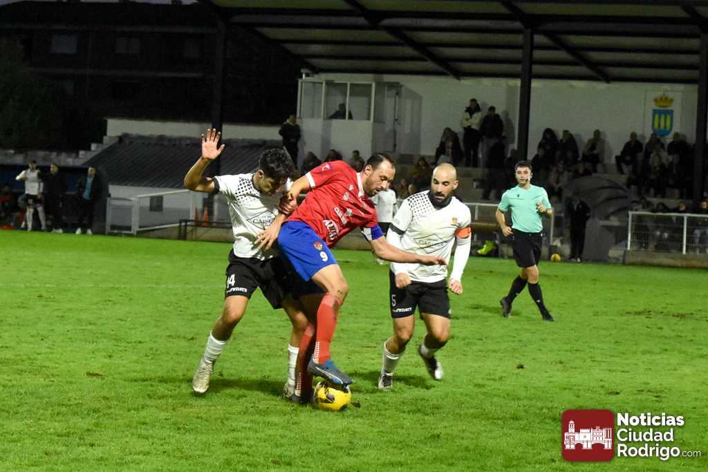 El primer tiempo inició con un juego relativamente igualado, con más iniciativa en ataque por parte del Ciudad Rodrigo CF, pero sin llegar a generar superioridad. Muy propio de partidos entre rivales de la zona alta como era el caso y en el que destacó un balón al palo de Víctor Abajo. La cosa se desató en el 29´ cuando Yeray Belotti adelantó a los zamoranos con un remate sobre un césped que se encontraba muy deteriorado. En el resto Albert Diatta fue de los más activos arriba, pero no encontró puerta.