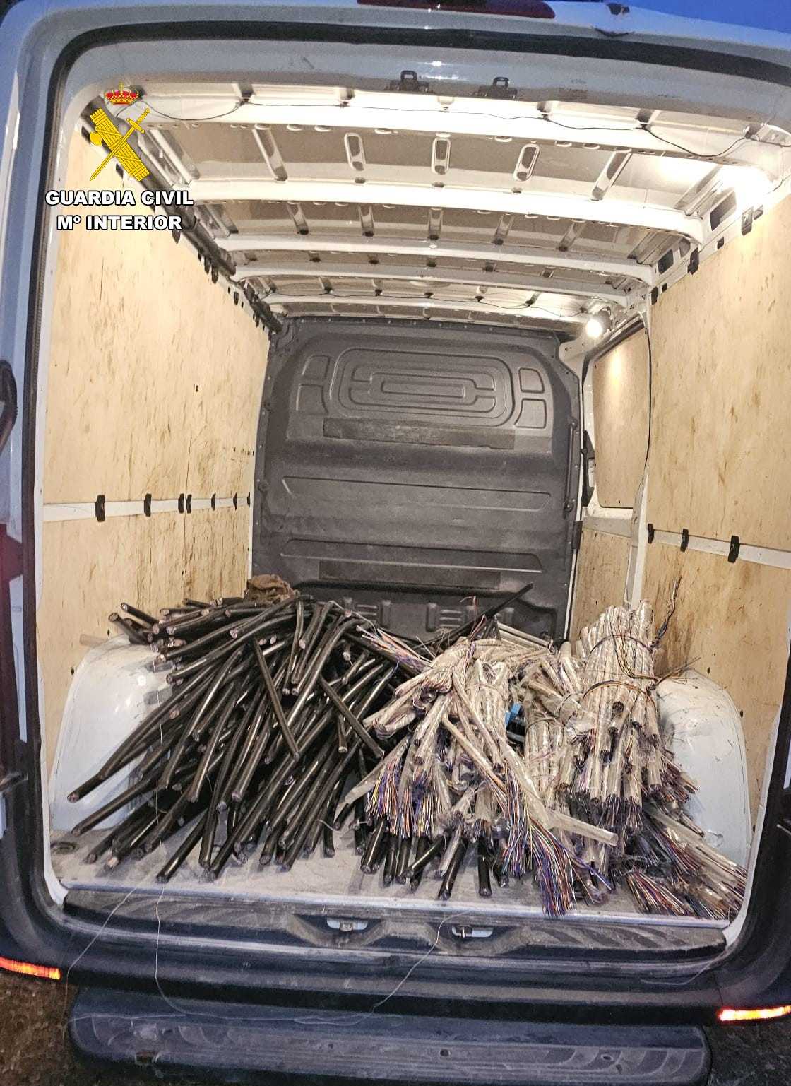 Ante la sospecha de que se encontraran ocultos en los alrededores sus ocupantes, para escabullirse de la vigilancia policial tras cometer un hecho delictivo, se procedió a establecer una vigilancia discreta del vehículo, siendo interceptado horas después, ocupado únicamente por el conductor, cuando intentaba salir de la zona de vigilancia, descubriendo en su interior una gran cantidad de cableado de cobre, con indicios de que provenía de líneas aéreas de telecomunicaciones.