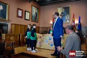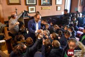 Los escolares de 1º y 2º de primaria de Misioneras de la Providencia-Santa Teresa visitaron durante esta mañana las dependencias del Ayuntamiento de Ciudad Rodrigo. Una visita donde estuvieron acompañados por el Alcalde Marcos Iglesias y los Concejales Ramón Sastre y Víctor Gómez.