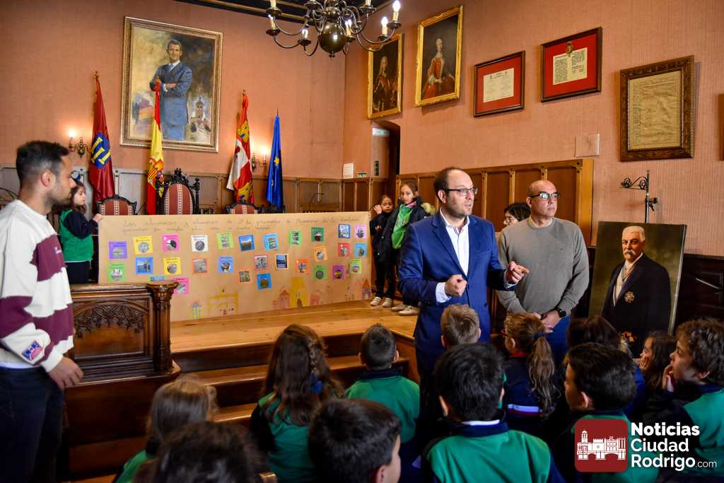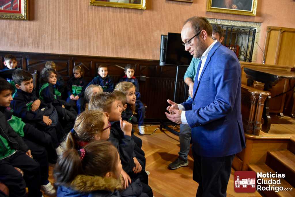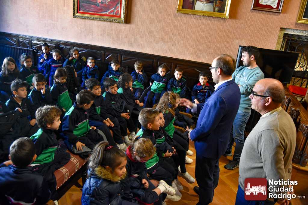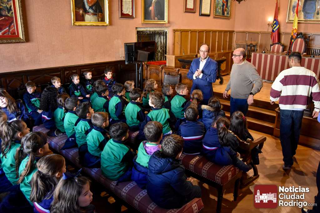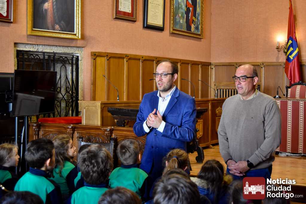 Los escolares de 1º y 2º de primaria de Misioneras de la Providencia-Santa Teresa visitaron durante esta mañana las dependencias del Ayuntamiento de Ciudad Rodrigo. Una visita donde estuvieron acompañados por el Alcalde Marcos Iglesias y los Concejales Ramón Sastre y Víctor Gómez.