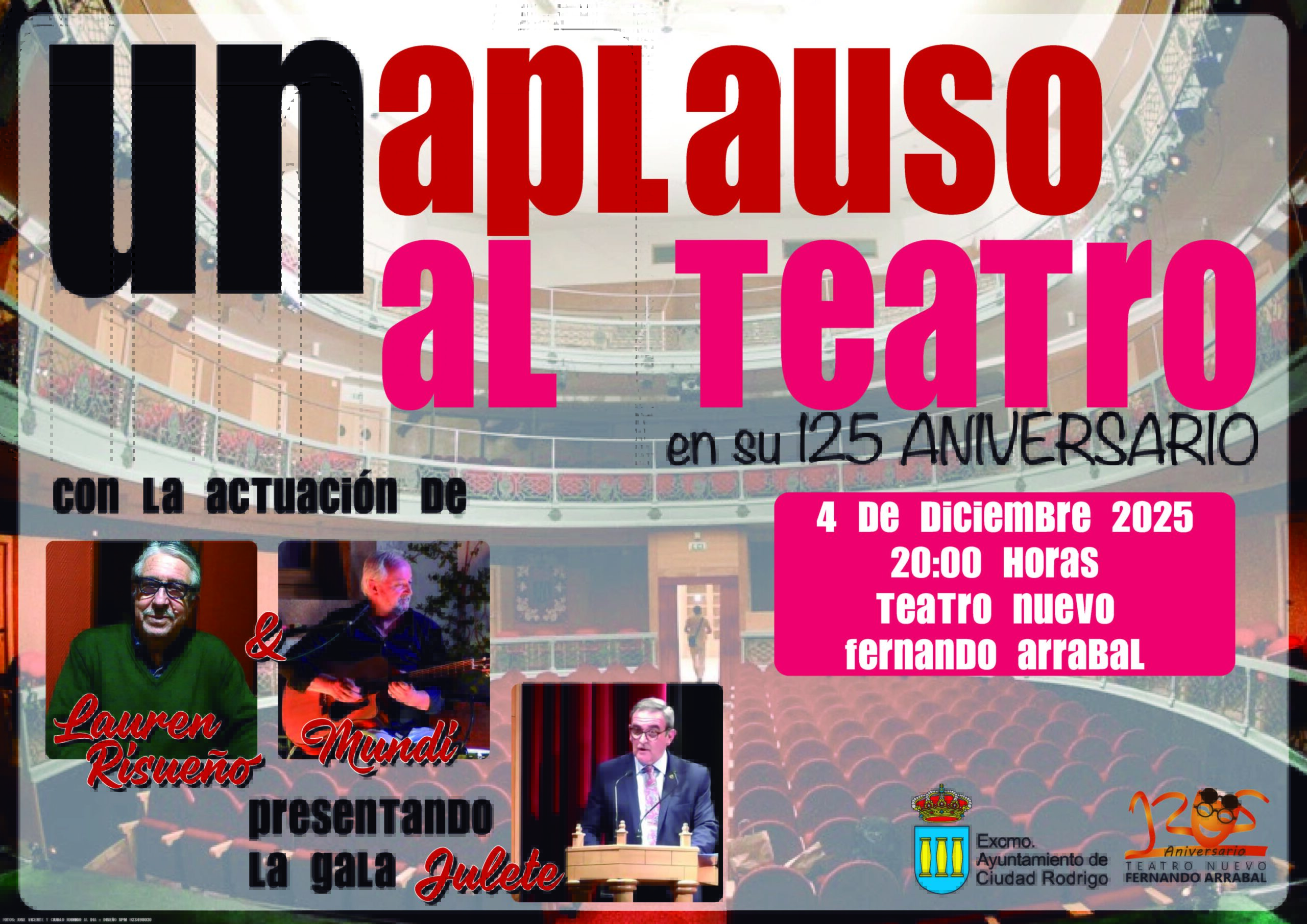 La gala, presentada por Julete «Moriche», se titula «Un Aplauso al Teatro» en su 125 Aniversario y tendrá lugar el próximo jueves 4 de diciembre