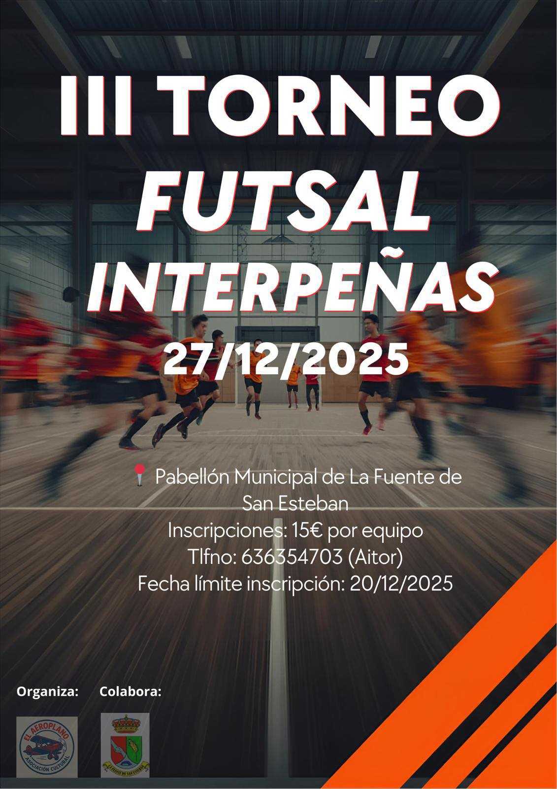 La Fuente de San Esteban contará por tercer año consecutivo con su Torneo de Fútbol Sala Interpeñas durante el periodo navideño. Dicho torneo es organizado por la Asociación El Aeroplano con la colaboración del Ayuntamiento de la localidad y se disputará el 27 de diciembre en el Pabellón Municipal de La Fuente de San Esteban.
