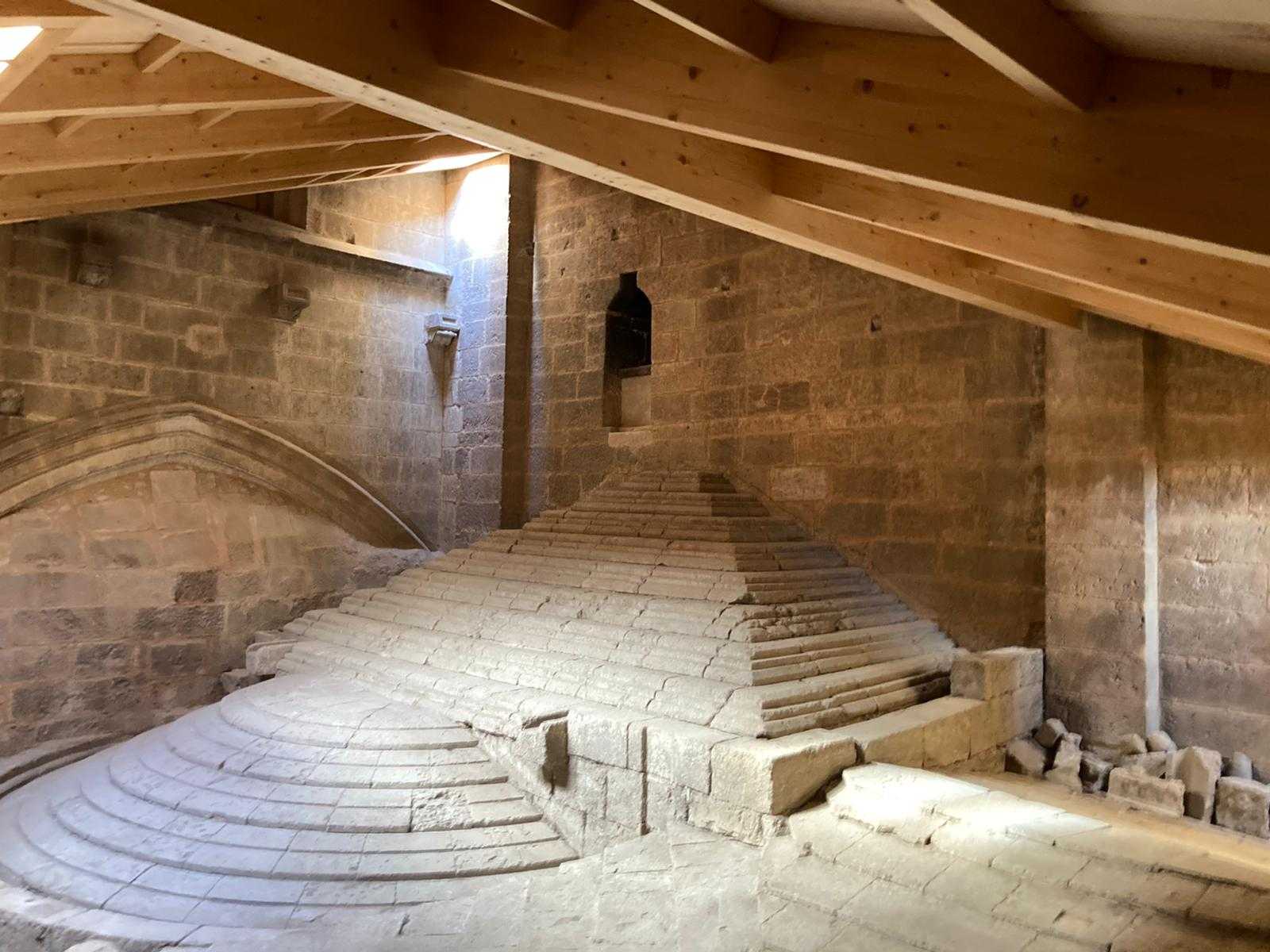 situado bajo la misma potenciando la contemplación de las cubiertas originales de piedra de la catedral románica. El jurado valoró la solución constructiva de la cubierta mediante rastreles de madera y teja talón Verea, que mejora las prestaciones y reduce el mantenimiento; y la dificultad de ejecución del proyecto, al emplear teja “vieja” recuperada como teja cobija.