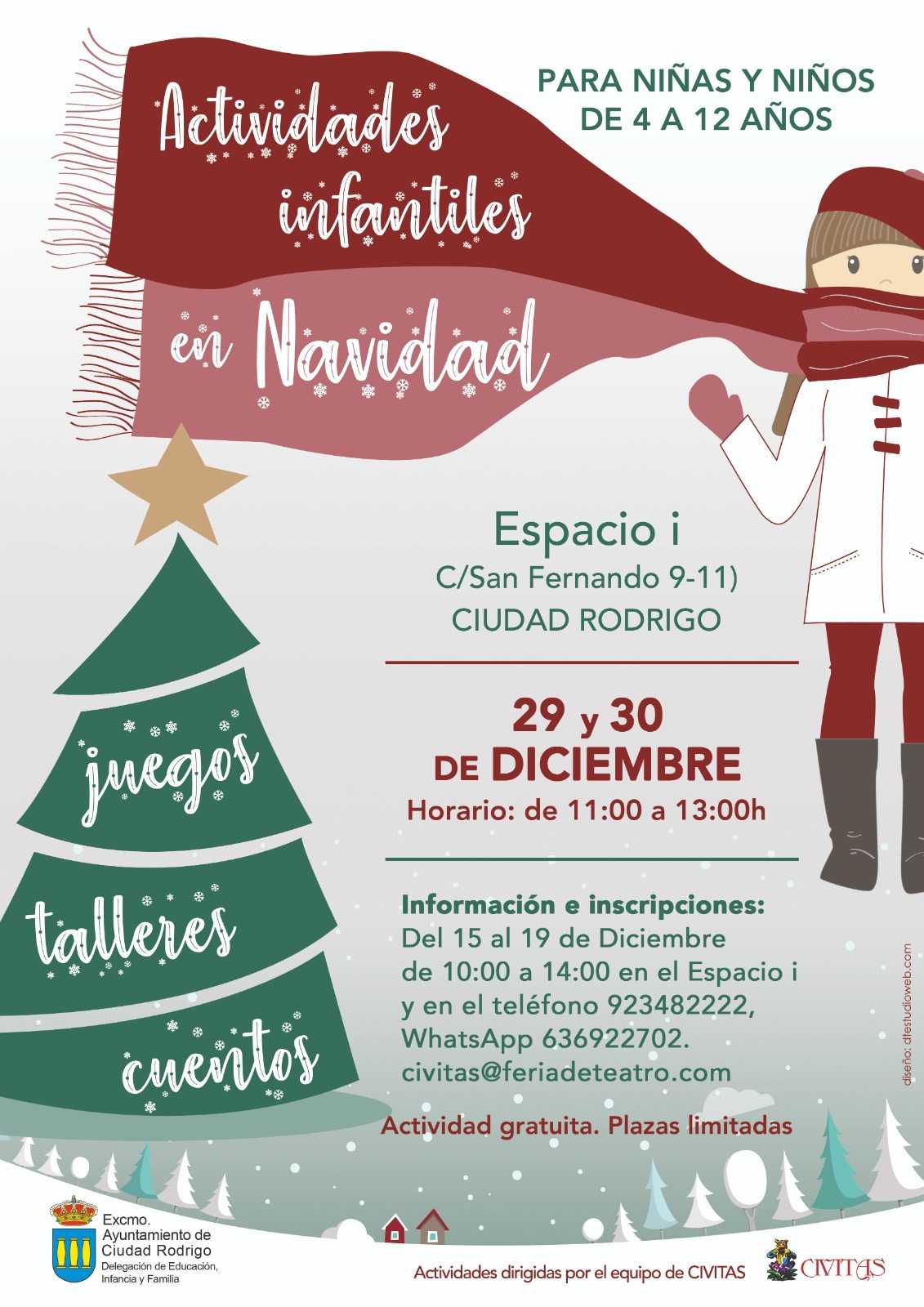 Estas actividades infantiles se realizarán en el Espacio I y estarán coordinadas por Civitas, requieren inscripción previa