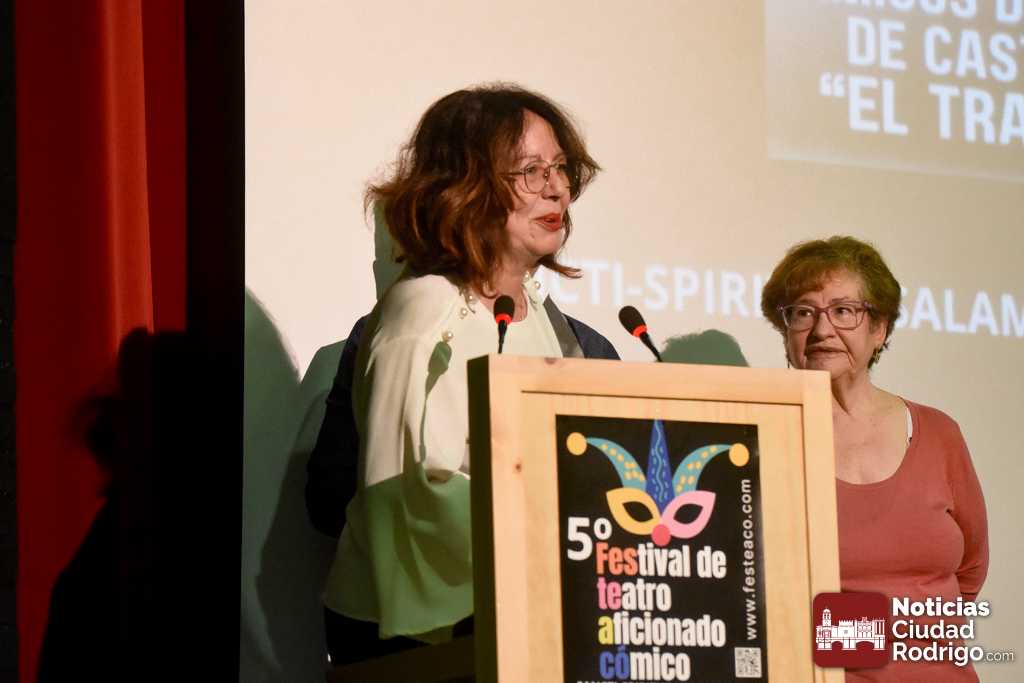 El acto cerró con la entrega del FESTEACO de Honor 2025 a la robledana Esther Prieto Gómez. Un reconocimiento a una larga y nutrida trayectoria, desde su juventud participando de diferentes grupos de música, teatro y coros en la comarca, hasta su trayectoria profesional dentro del Departamento de Cultura de la Diputación de Salamanca, la Concejalía de Robleda en los años 80 y 90 o, sobre todo, a través de su papel como Animadora Sociocultural de la zona oeste de la provincia de Salamanca, entre muchas otras.