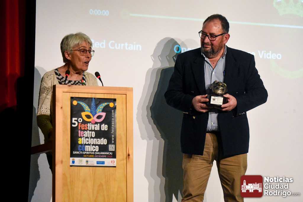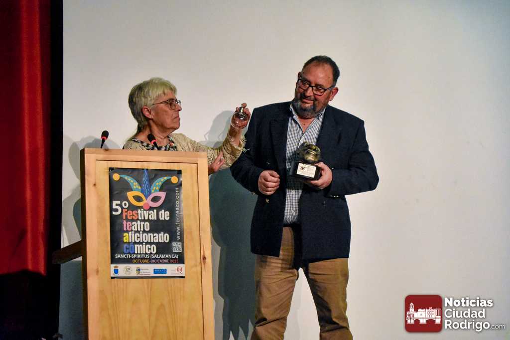 El FESTEACO 2025 bajó el telón durante la tarde-noche dominical a su quinta edición en el Centro Cultural de Sancti Spiritus. El Festival de Teatro Aficionado Cómico de la localidad, ya asentado completamente en el calendario cultural de la provincia de Salamanca y siendo referente por la calidad de los espectáculos y las altas asistencias de público a todas las representaciones, celebró su entrega de premios en una gala que, para seguir en la buena línea de público, rozó el lleno.