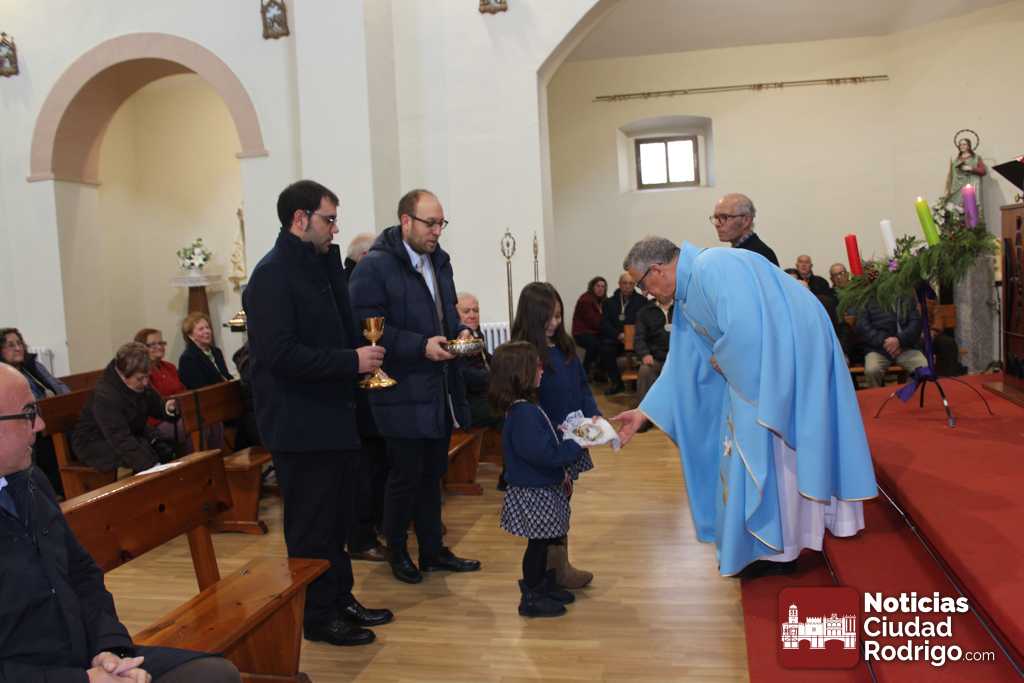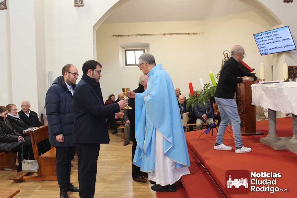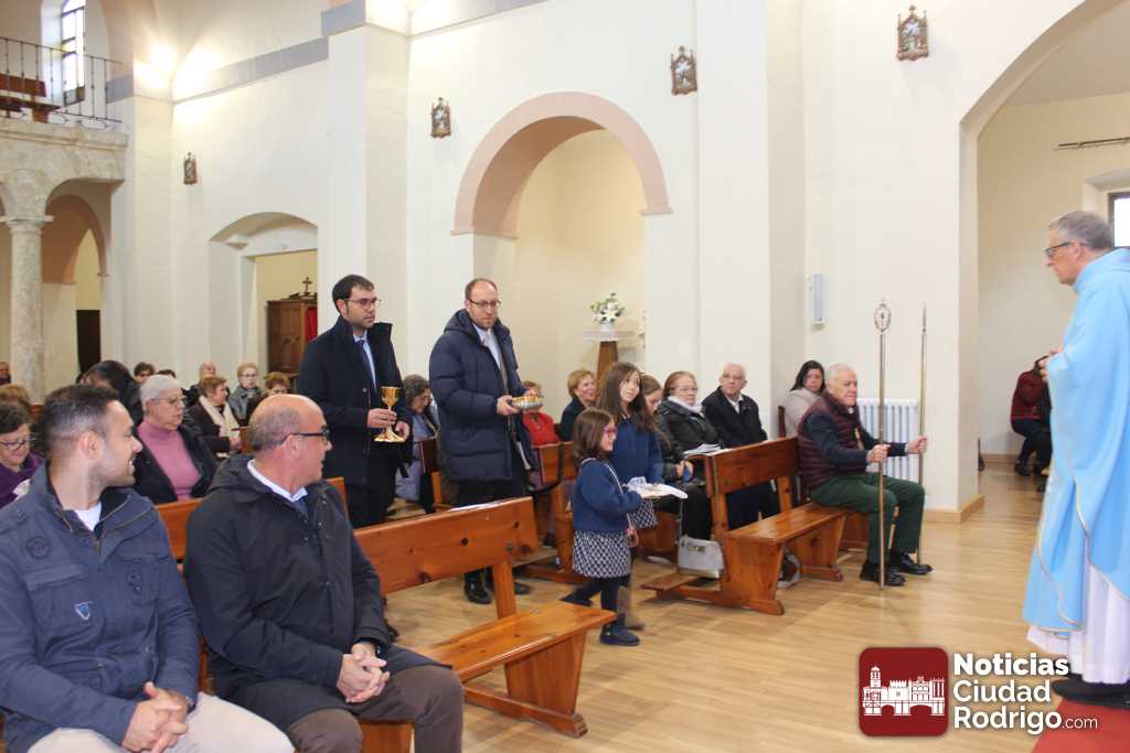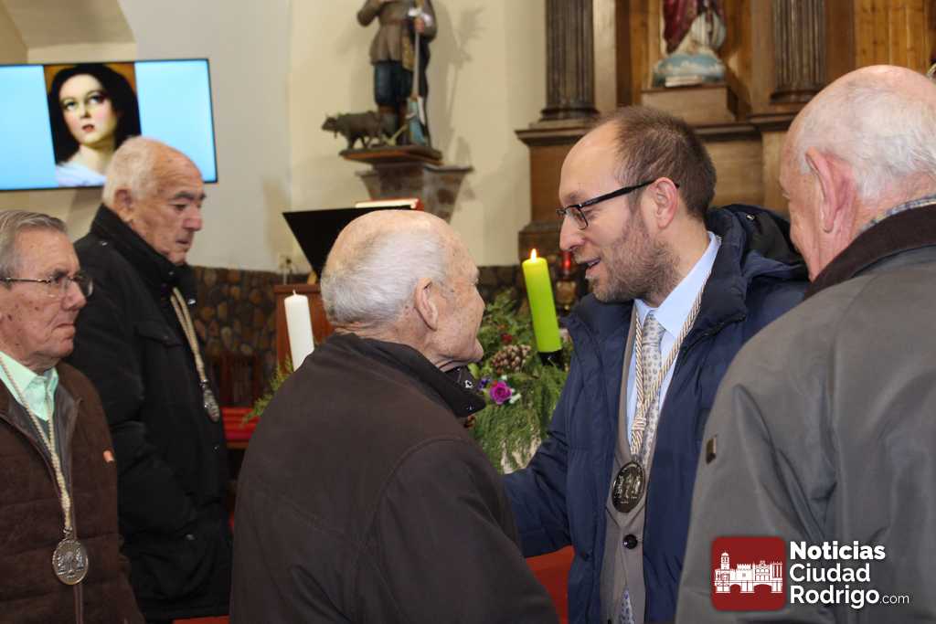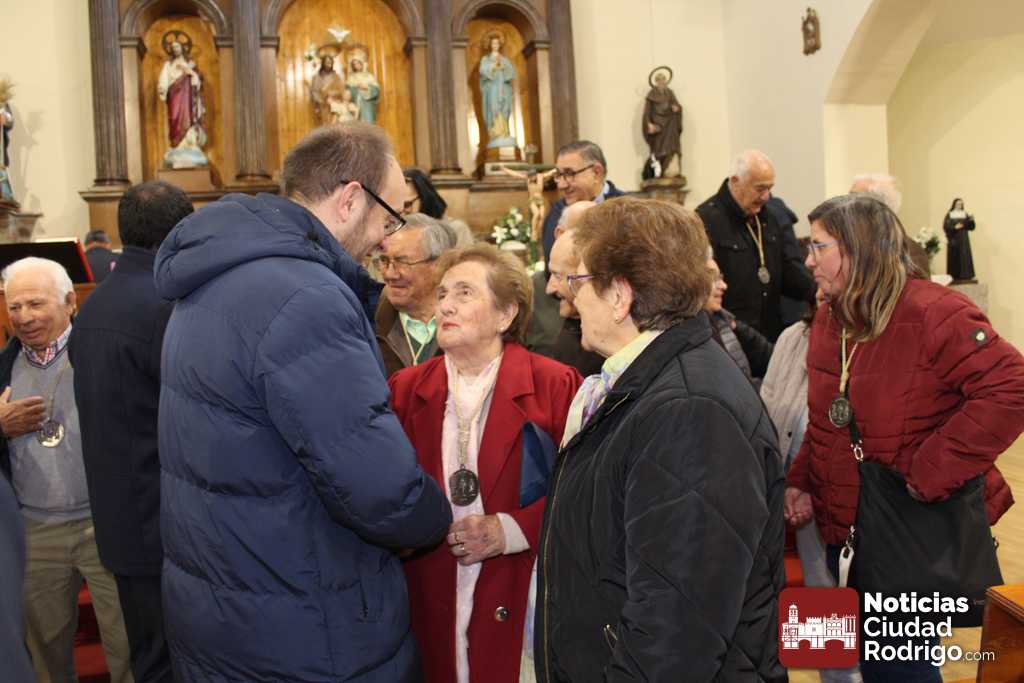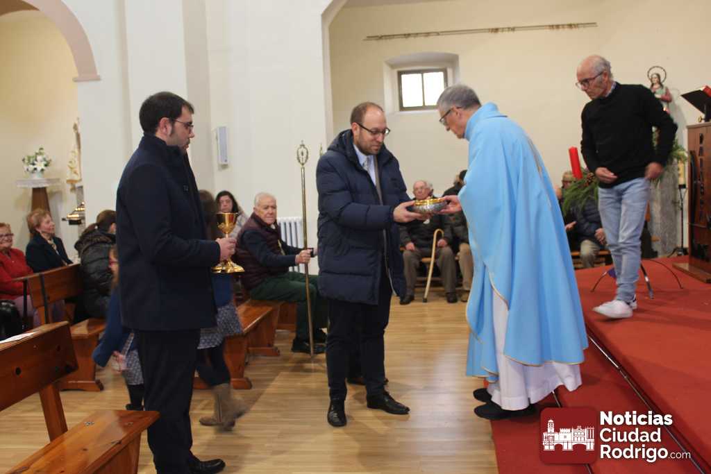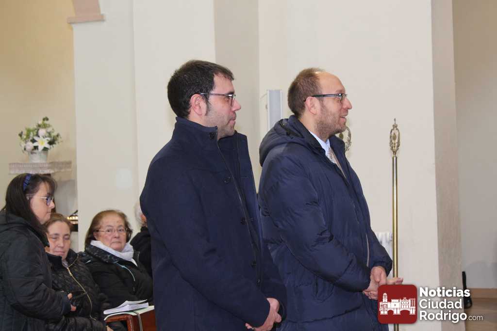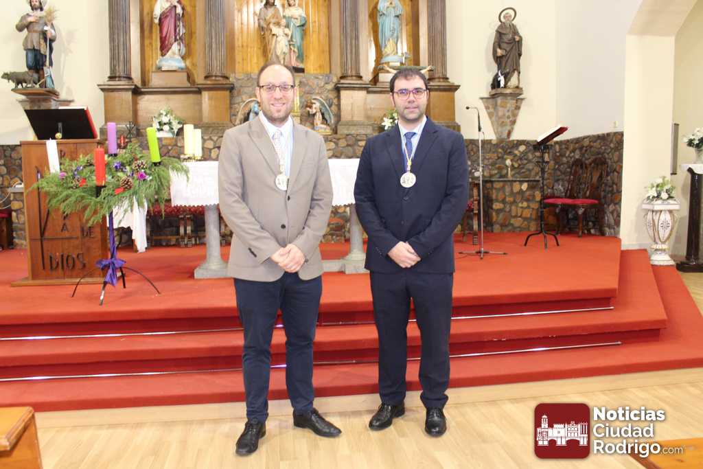 En este caso, estos nuevo cofrades son Marcos Iglesias, actual alcalde de Ciudad Rodrigo, y Rodrigo Toribio, concejal en el Ayuntamiento mirobrigense. Ambos cuentan con raíces familiares en el barrio donde se encuentra enclavaba la parroquia. En acto de imposición de las medallas, después del ofertorio en el que han participado activamente, han estado acompañados por el también concejal José Manuel Jerez, presidente de la Cofradía, el teniente alcalde Ramón Sastre y el concejal Víctor Gómez.
