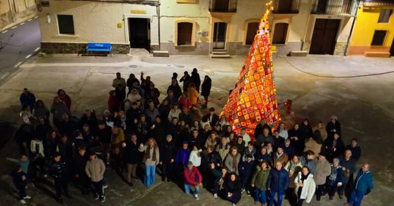 Por segundo año consecutivo, la Asociación Cultural Tres Puentes Risco de Martiago, con el apoyo de la Asociación de Mayores La Paloma, ha instalado en la Plaza el precioso árbol tejido a ganchillo por las mujeres del pueblo