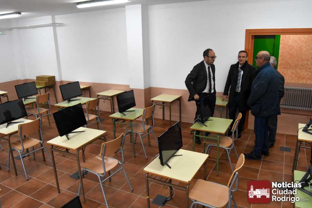 El Ayuntamiento de Ciudad Rodrigo, encabezado por el Alcalde Marcos Iglesias, y la Delegación Provincial de la DGT, representada en su Director Miguel Moreno, han inaugurado durante la mañana de jueves el nuevo aula de exámenes de Ciudad Rodrigo, ubicada en el edificio que sirve como sede de la AAVV El Puente y Huertas de la Artesa y que busca cumplir con las nuevas directrices de digitalización de cara al año 2026.