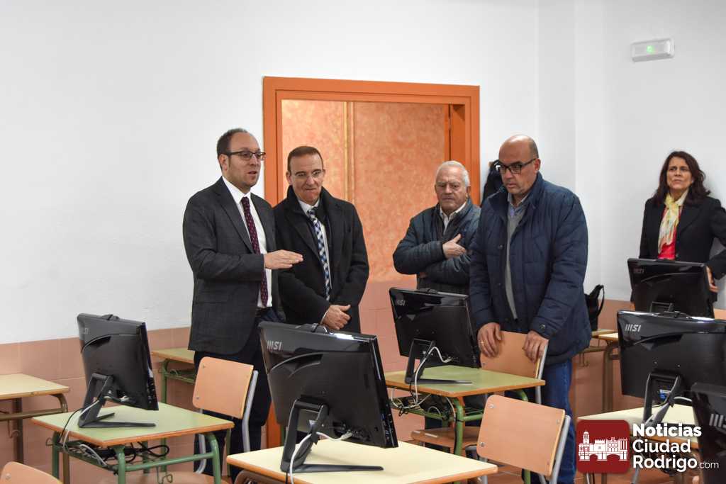 El Ayuntamiento de Ciudad Rodrigo, encabezado por el Alcalde Marcos Iglesias, y la Delegación Provincial de la DGT, representada en su Director Miguel Moreno, han inaugurado durante la mañana de jueves el nuevo aula de exámenes de Ciudad Rodrigo, ubicada en el edificio que sirve como sede de la AAVV El Puente y Huertas de la Artesa y que busca cumplir con las nuevas directrices de digitalización de cara al año 2026.