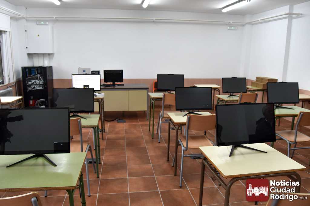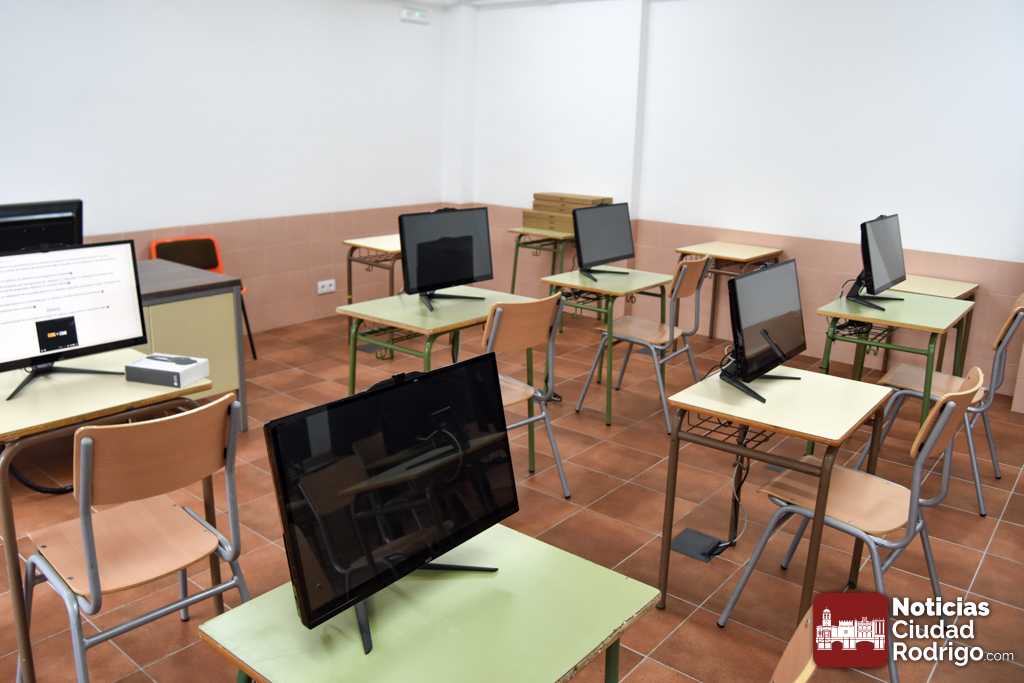 El aula cuenta con un total de 15 ordenadores nuevos adaptados para la realización de exámenes, así como se han llevado a cabo labores de acondicionamiento del espacio en torno a tareas de albañilería, luces, mobiliario y cableado, lo que ha llevado a una inversión total de 30.000€, costeada al completo por el consistorio local con fondos propios.