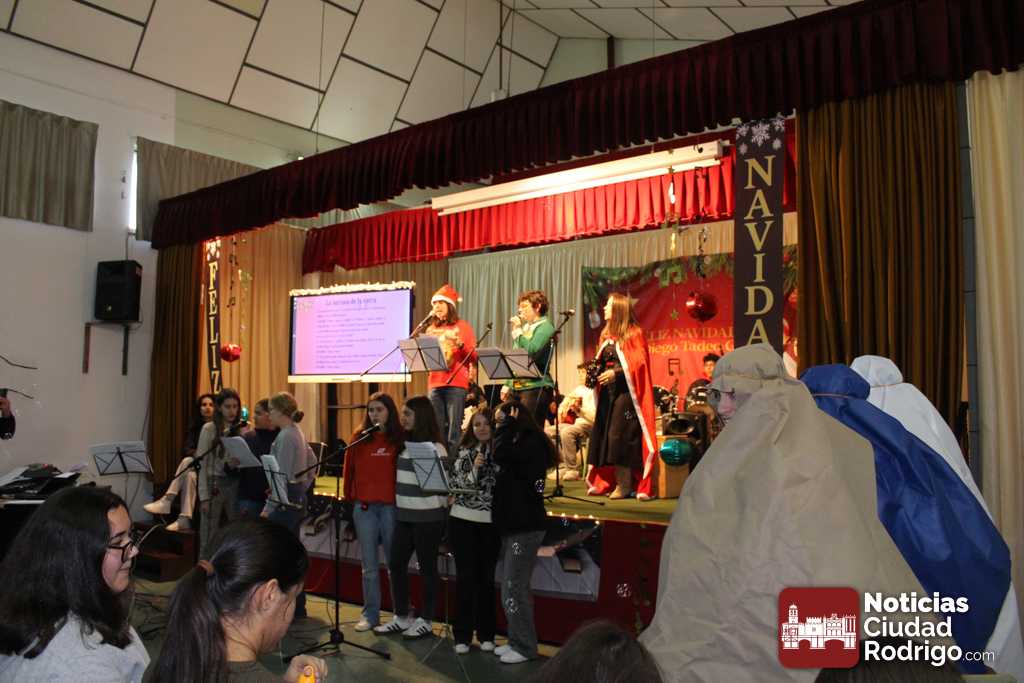 El Instituto Fray Diego Tadeo ha vivido una mañana muy navideña con un festival de canciones, donde se han incluido villancicos tradicionales y otras canciones navideñas. Todo el mundo ha estado muy implicado, desde los jóvenes que han participado cantando hasta los que han tocado los instrumentos más variados, acompañados también de profesores y profesoras que también han cantado o tocado instrumentos, coordinados por el profesor de música Sergio Caballer.