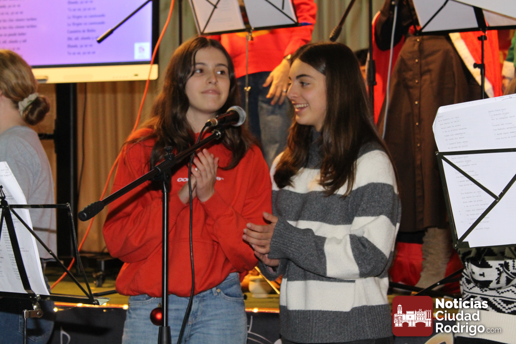 También, ha habido algunas estudiantes vestidas para la ocasión de figuras del Belén. En definitiva ha sido un festival divertido y ameno, que ha contado con un segundo pase para alumnado del colegio Miróbriga a partir de las doce y media de la mañana, con participación de la banda de profes del cole.