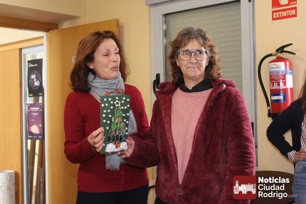 Posteriormente, se ha fallado el resultado del concurso de postales navideñas. Pilar Rivero, pintora y miembro del jurado, ha explicado que la decisión ha sido muy difícil y que debido al nivel de las creaciones, aunque estaba previsto un único premio, el jurado ha solicitado al centro que añadiera uno más. De manera, que el primer premio ha sido para Maira y también ha sido premiada la postal de Blanca.