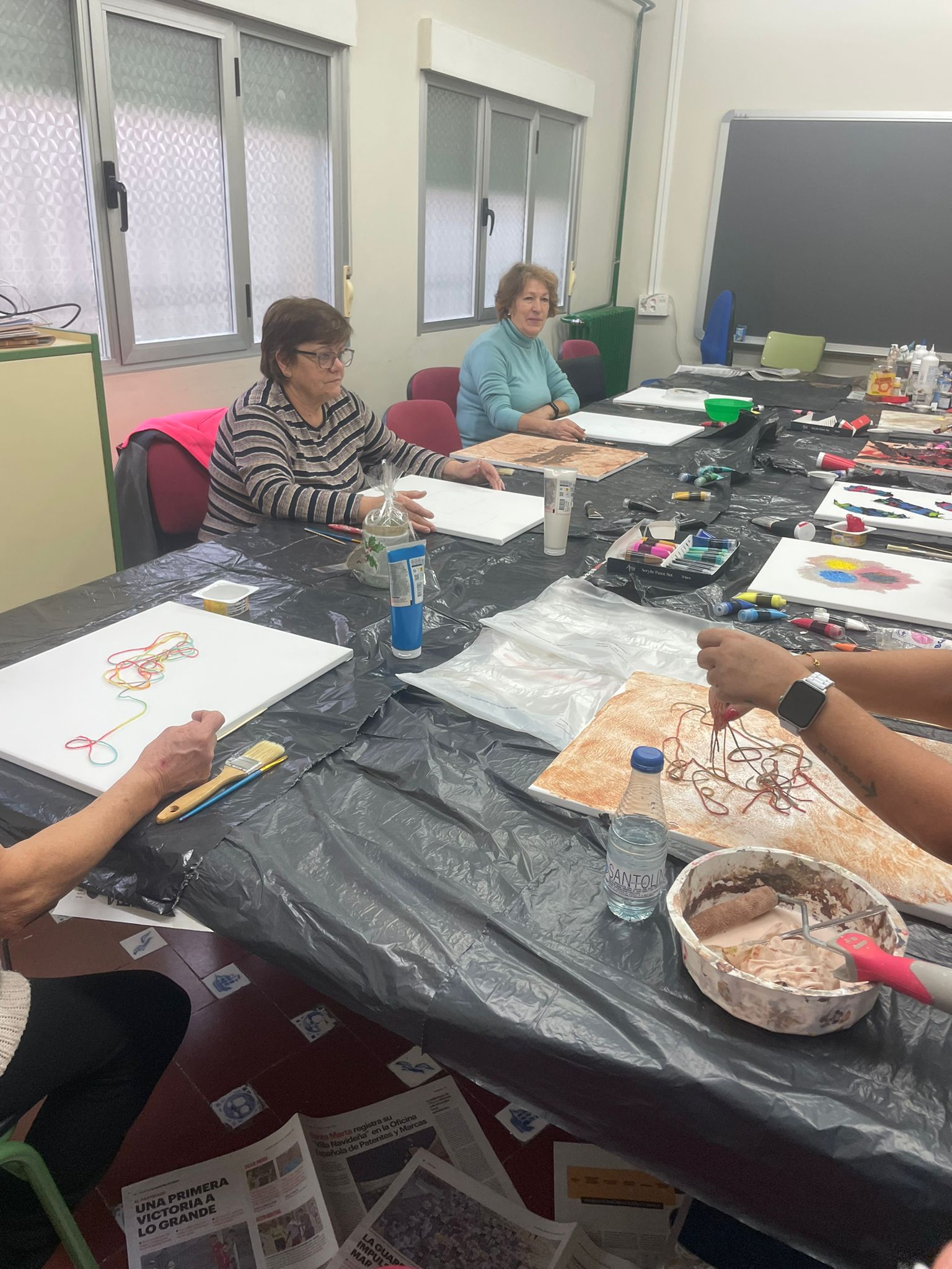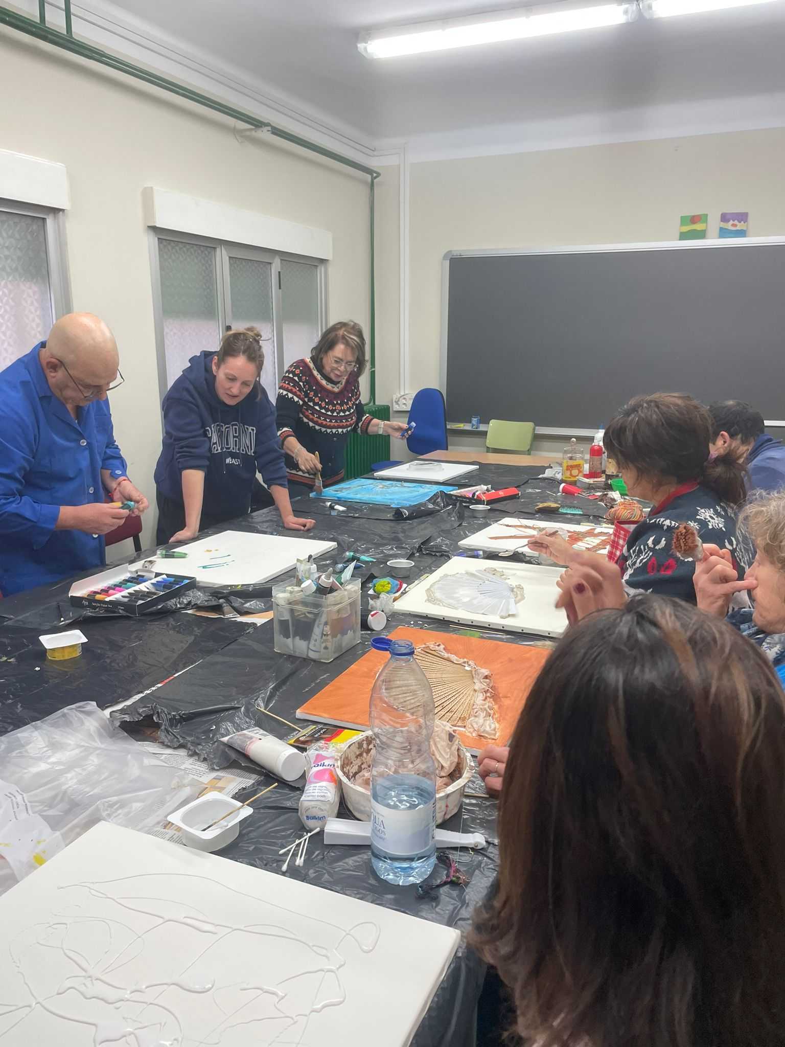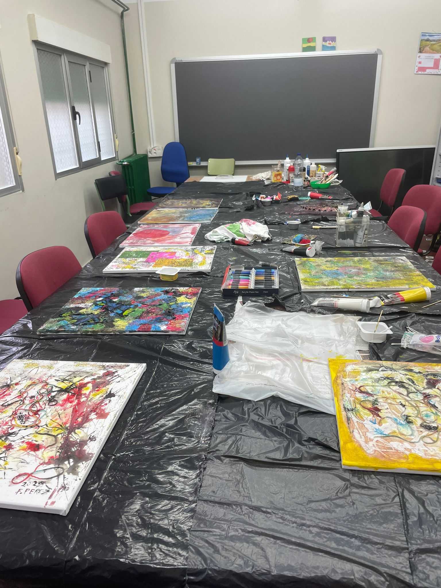 Para empezar por la mañana ha habido talleres abiertos, por ejemplo uno de los alumnos, Juan Ventana, ha impartido de forma voluntaria un taller de arte abstracto en el que ha participado todo el que ha querido.