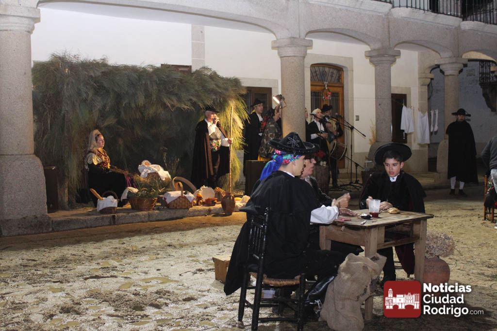 Como no podía ser de otra manera, el Belén Charro encuentra su lugar y encaja a la perfección en la cuna de la Charrería, en Villavieja de Yeltes. La Virgen María y San José, los pastores, todos vestidos de charro danzando y cantando temas del folclore salmantino, encuentran su escenario adecuado en la plaza de Villavieja. Así al menos se ha podido comprobar esta tarde en Ciudad Rodrigo.