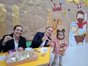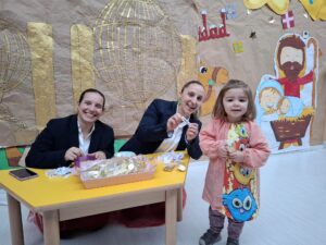 Por otro lado en la escuela infantil, también han celebrado el lunes 22 de diciembre un sorteo de lotería de Navidad, donde las “niñas de San Ildefonso” fueron cantando los diferentes premios gordos y la particular pedrea (monedas de chocolate), sacando cada nombre de los niños y niñas del centro.