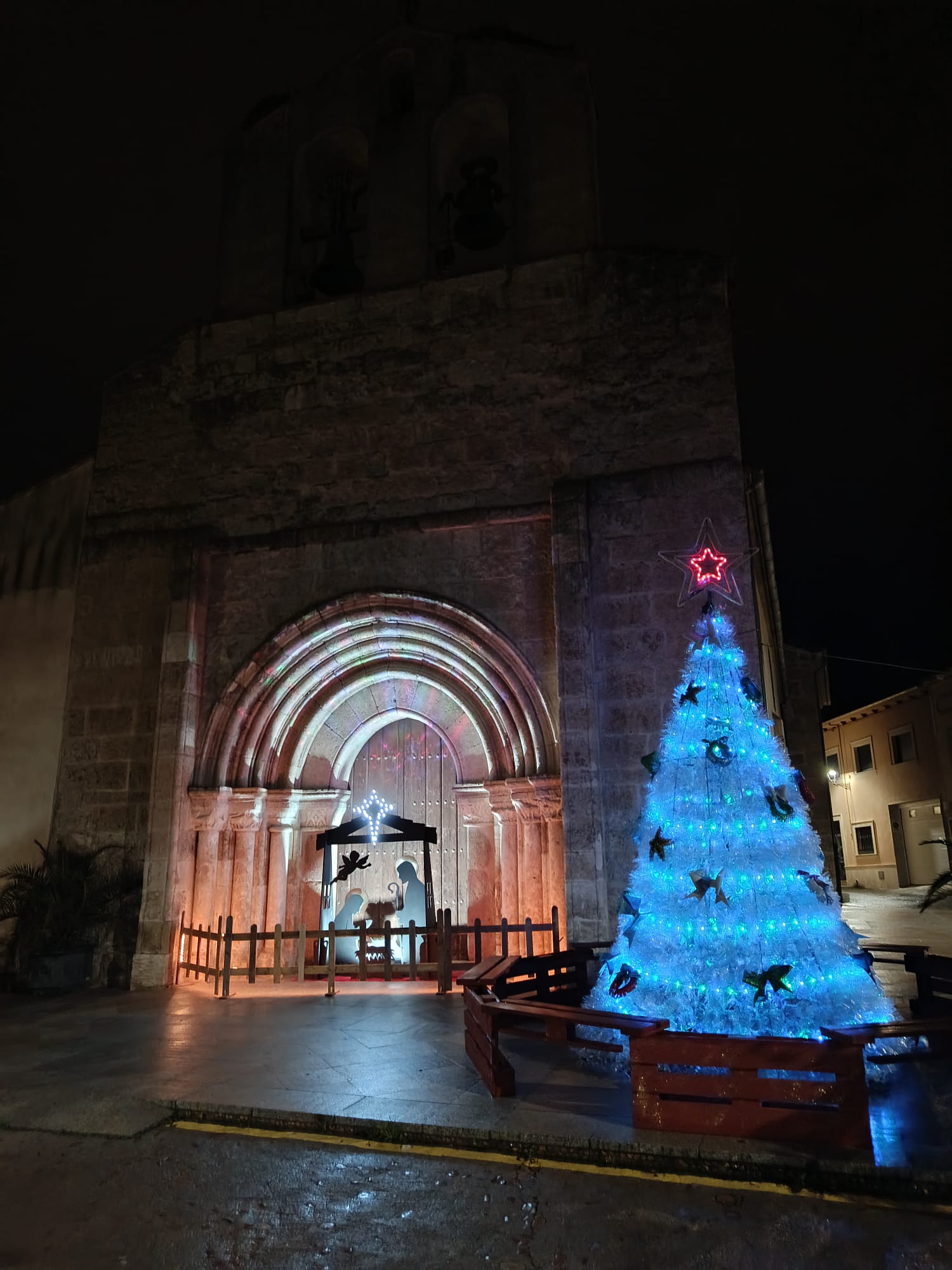Así pues, la parroquia cuenta con una decoración especial navideña, con el clásico árbol de Navidad y una estampa del nacimiento en forma de silueta, acompañada por una iluminación ornamental en la entrada.