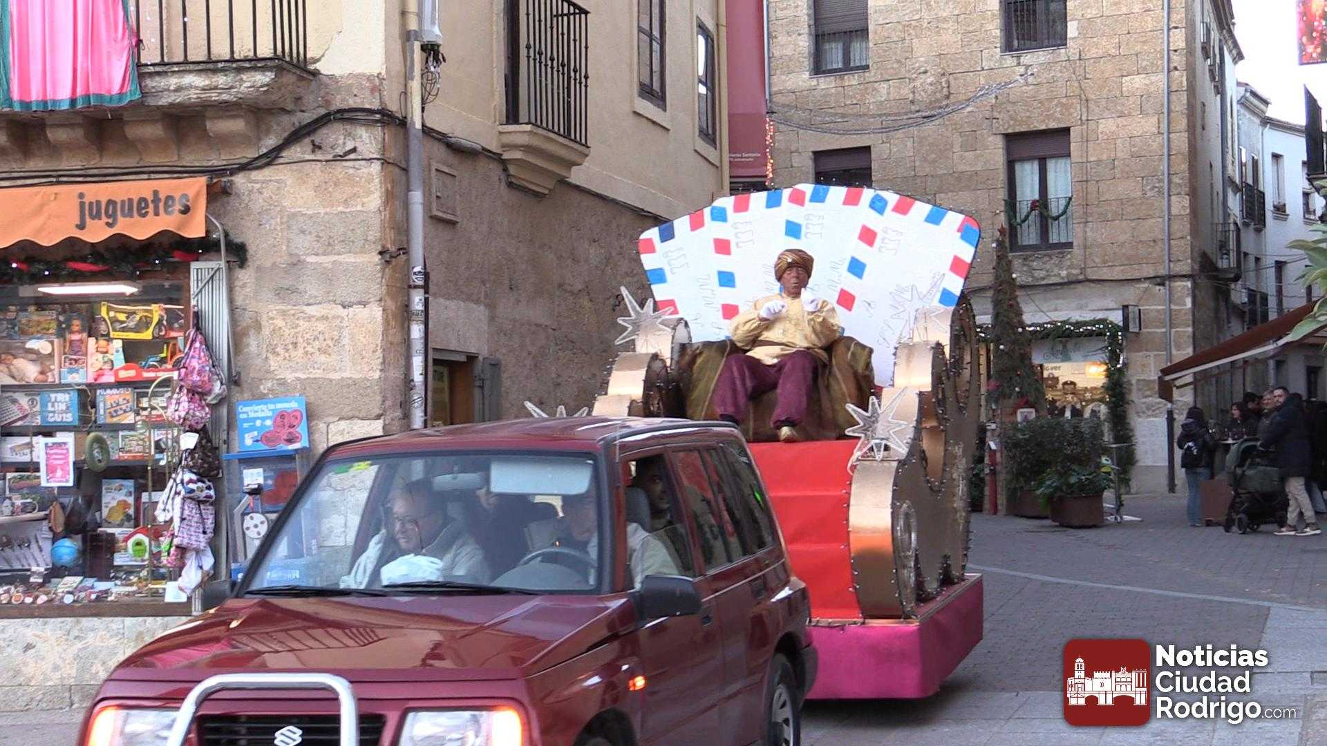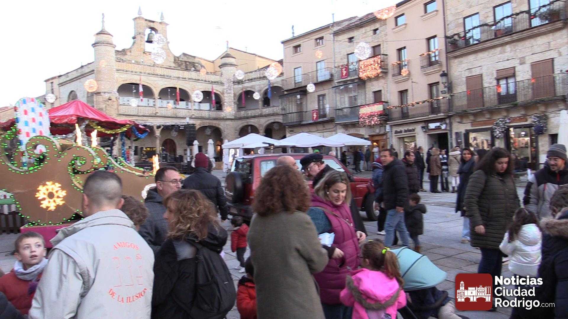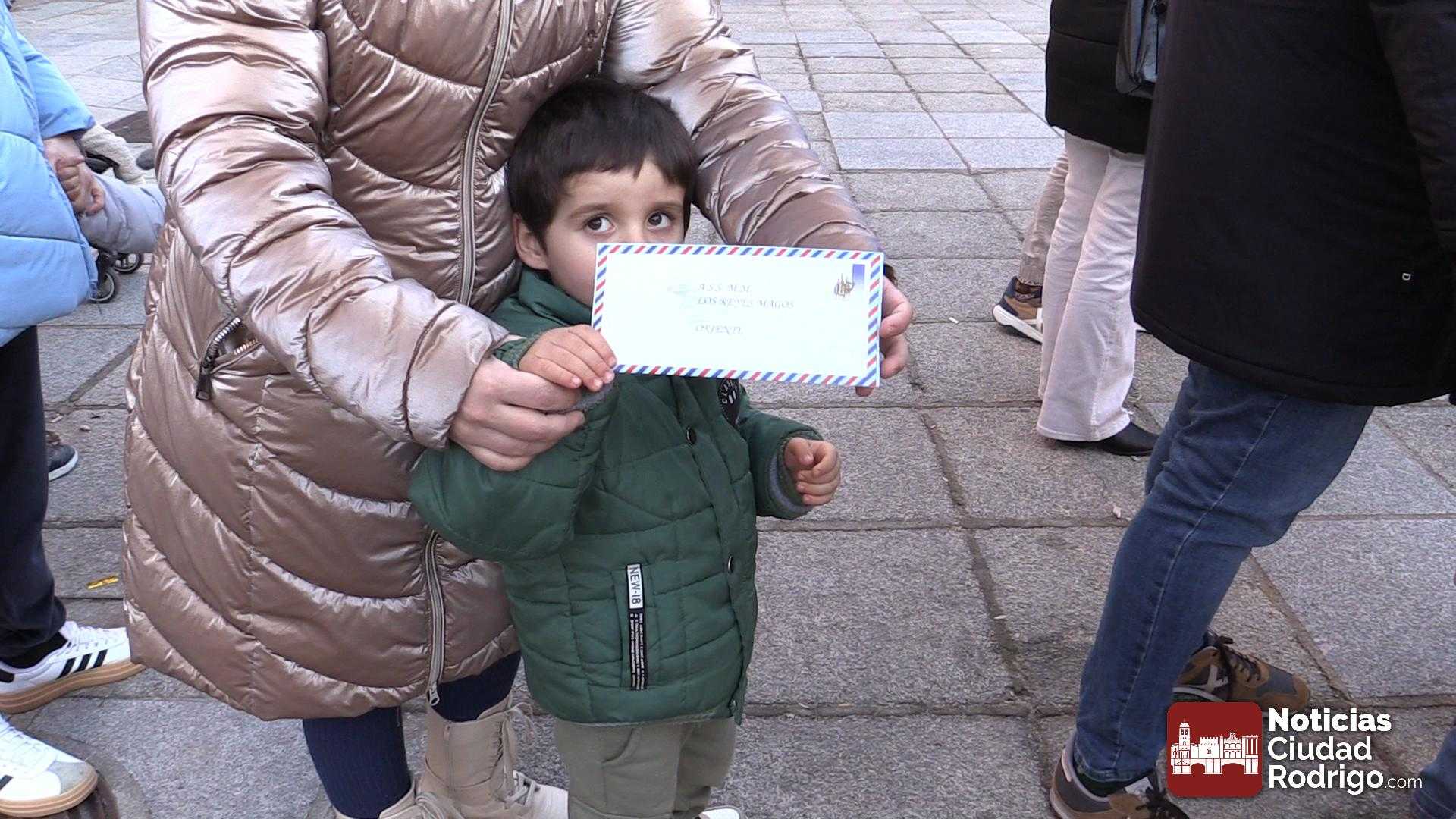 Gran expectación para la visita del Cartero Real a la plaza Mayor de Ciudad Rodrigo, un recibimiento organizado por la asociación «Amigos de la Ilusión» con la colaboración del Ayuntamiento de Ciudad Rodrigo. Poco después de las cinco y media de la tarde, el Cartero Real, emisario de Sus Majestades los Reyes Magos de Oriente, ha entrado en la plaza Mayor mirobrigense subido en una carroza decorada con cartas.