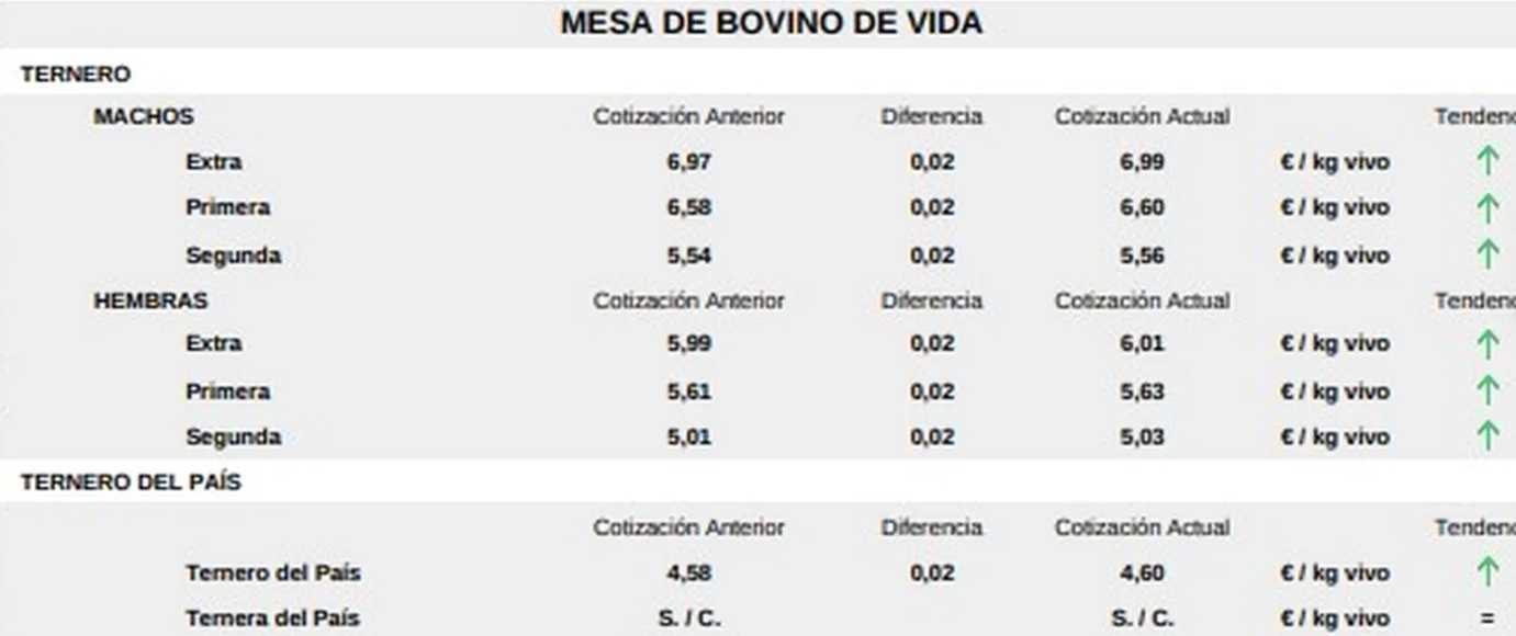 - Incremento de precios: Se registró un aumento de dos céntimos para los terneros.