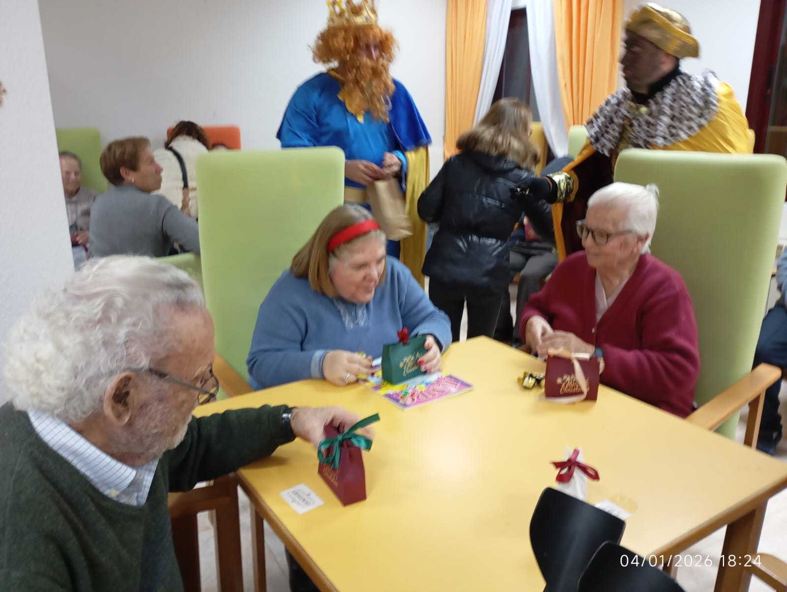 Durante el encuentro, los residentes disfrutaron de un ambiente lleno de ilusión y participación. Como muestra de reconocimiento por su buen comportamiento a lo largo del año, los Reyes Magos hicieron entrega de un obsequio especialmente pensado para ellos, destinado a favorecer la realización de ejercicios manuales y estimular la movilidad de las manos. La actividad fue recibida con entusiasmo por parte de los usuarios del centro, reforzando así el valor social y emocional de estas celebraciones navideñas en el ámbito residencial.