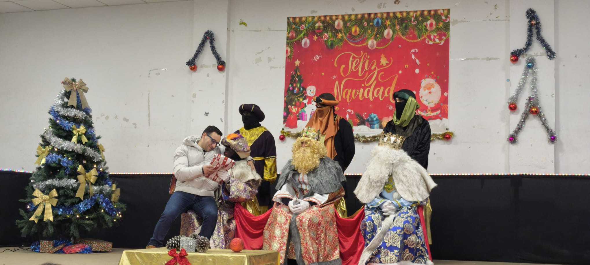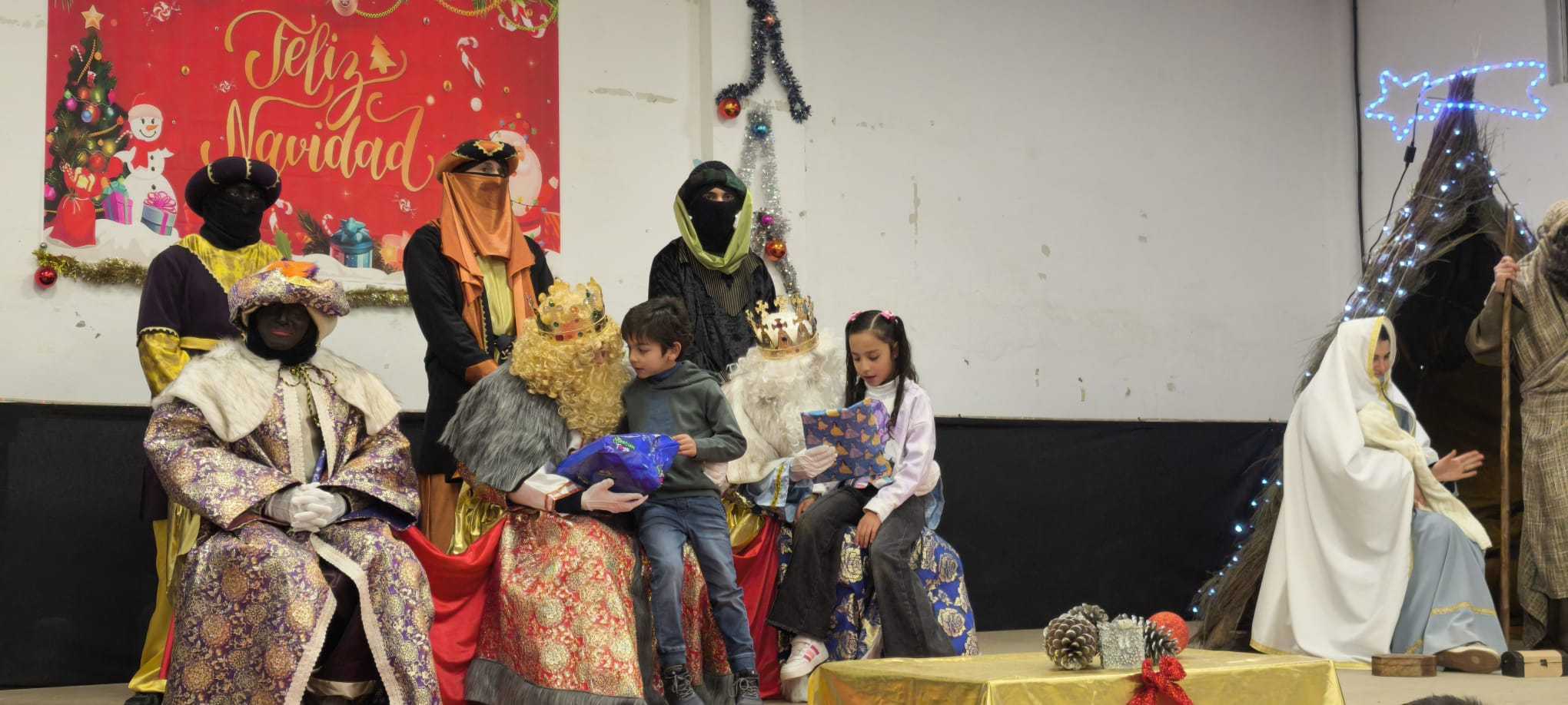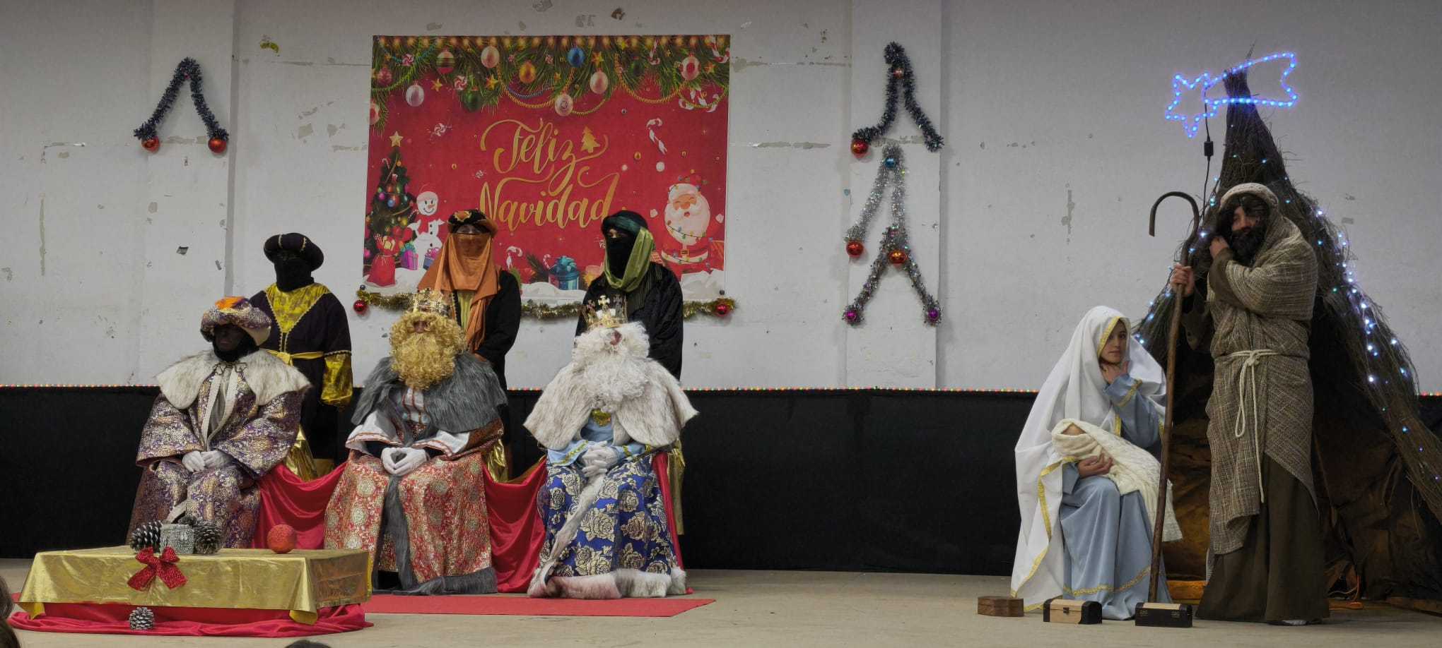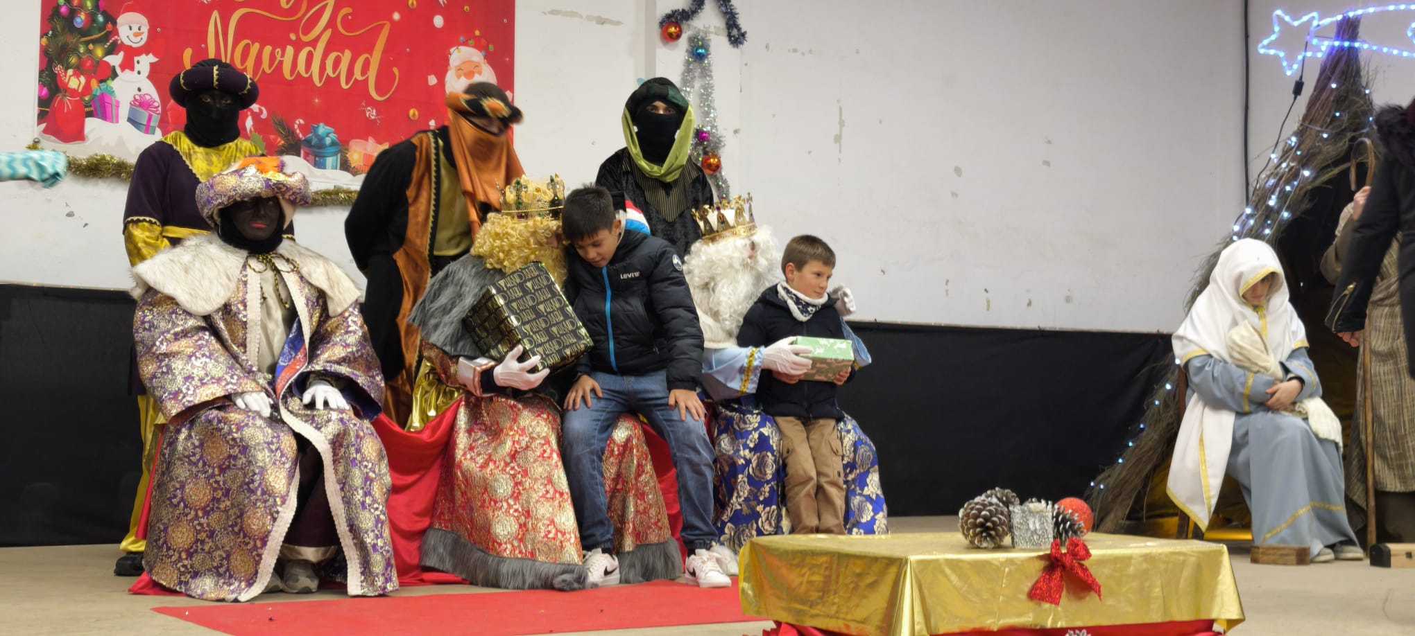 El recorrido finalizó en La Panera, donde se encontraba un escenario con los tronos para Gaspar, Melchor y Baltasar. Allí fueron saludando a los niños y niñas, también a algún mayor, entregando regalos y caramelos.