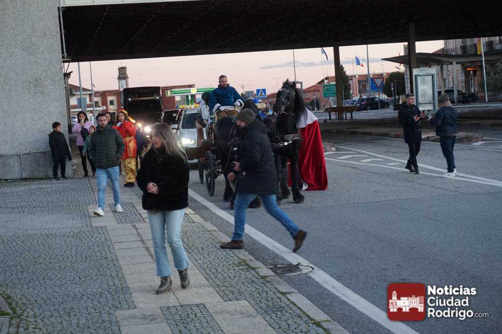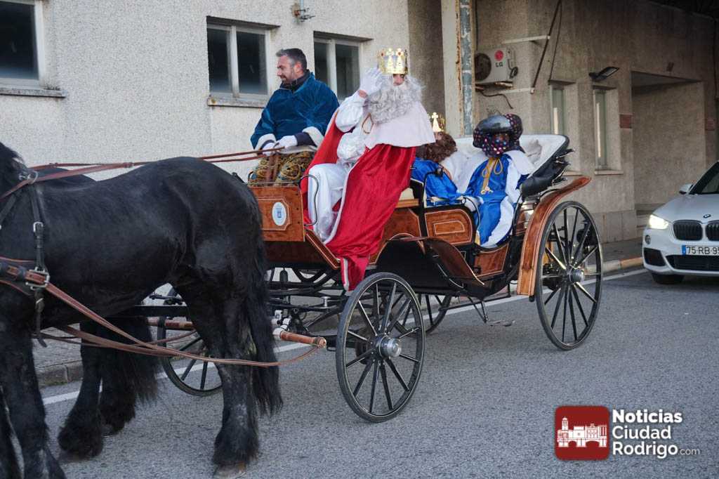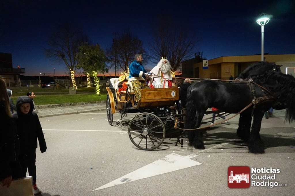Los Reyes Magos acudieron a la frontera en calesa tirada por caballos y al llegar se soltaron farolillos