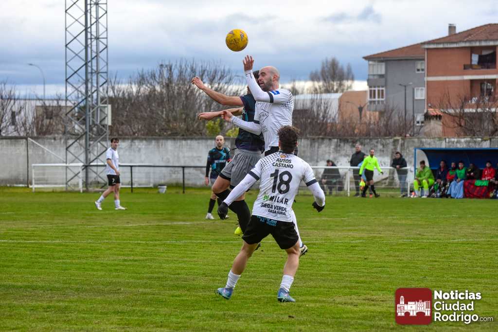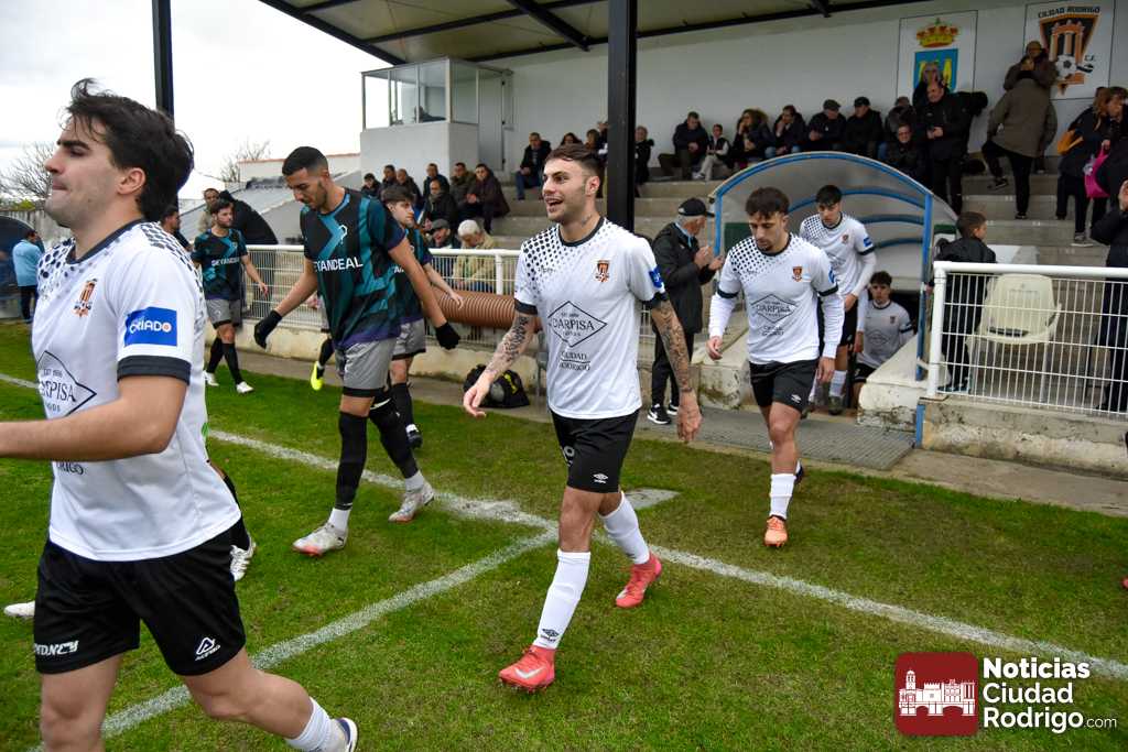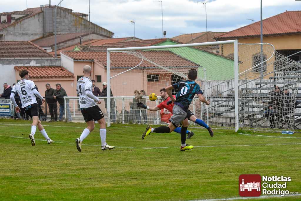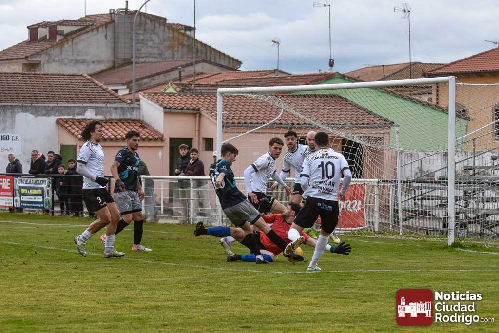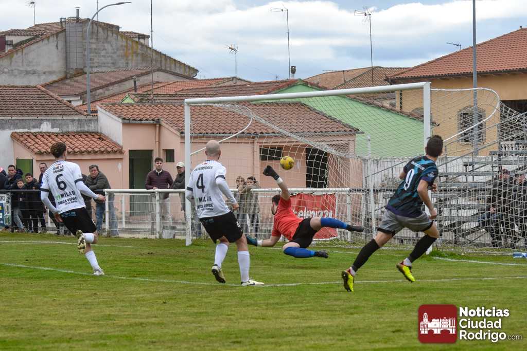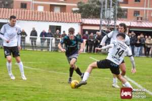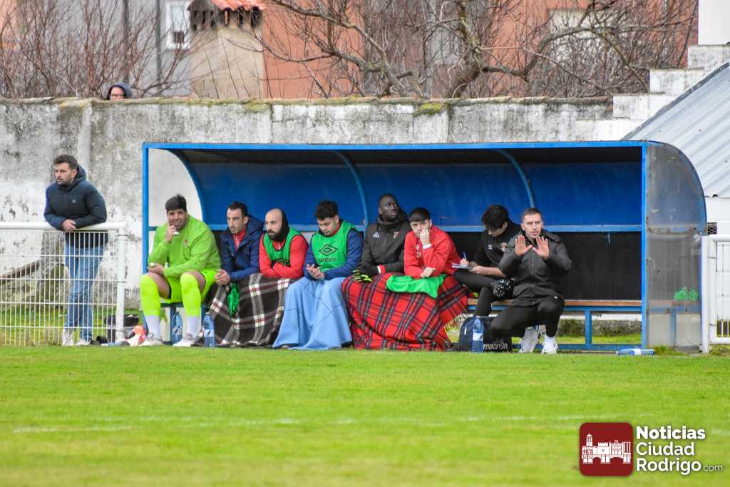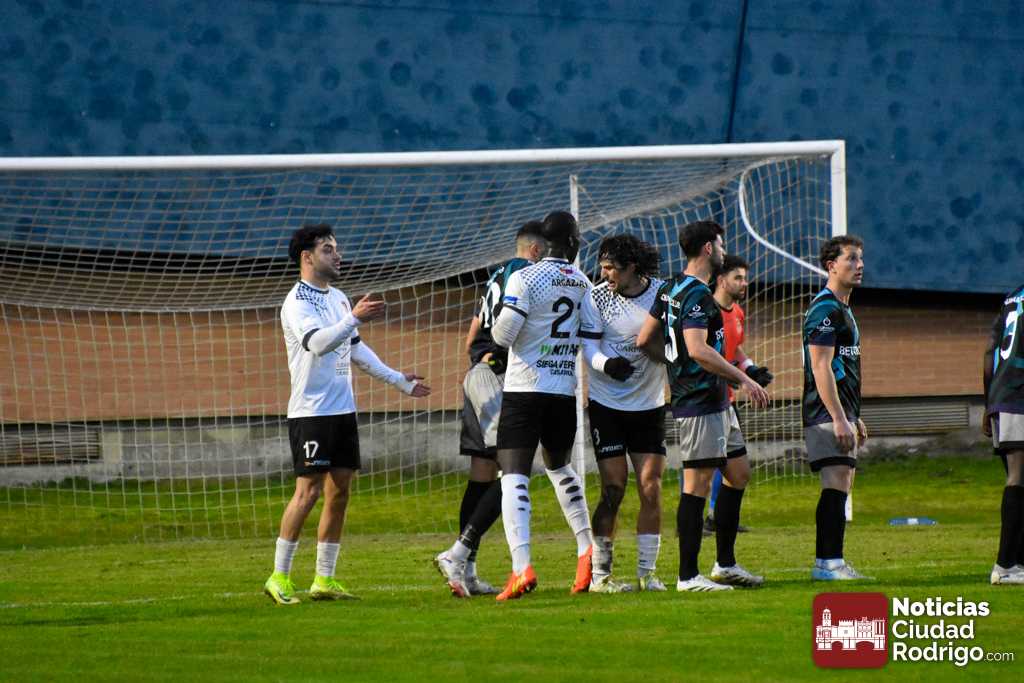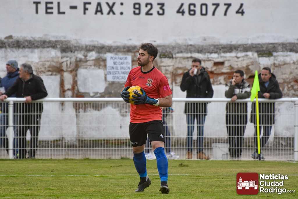La entrada de Maza en el 60´ alivió muchas carencias en el centro del campo y el juego del equipo llegó a ser reconocible en algunos tramos y, aunque sin milagros, el Ciudad Rodrigo CF se vino arriba. Aquí al cuadro zamorano le empezó a pesar el reloj e inició una cadena de pérdidas de tiempo que no supieron cortar bien desde el trio arbitral. En el último tramo, cuando parecía que la machada se iba a consumar, Albert Diatta cazó un balón rebotado en la cocina del área y con una melé alrededor para rescatar un partido en el primer tiro a puerta del Ciudad Rodrigo CF en el encuentro (hicieron dos en total).