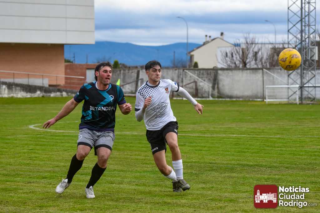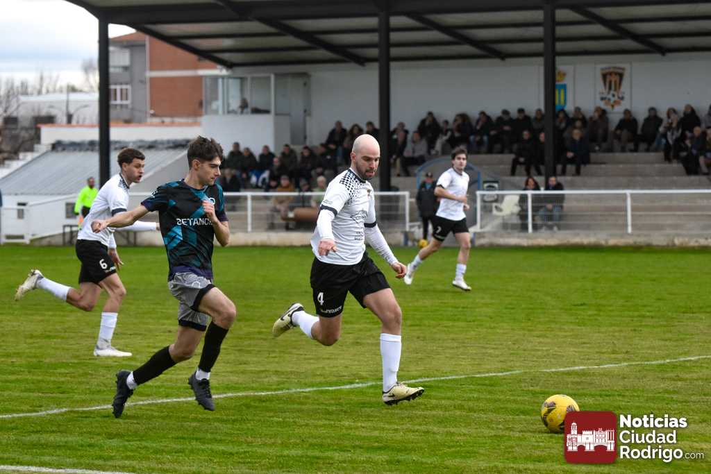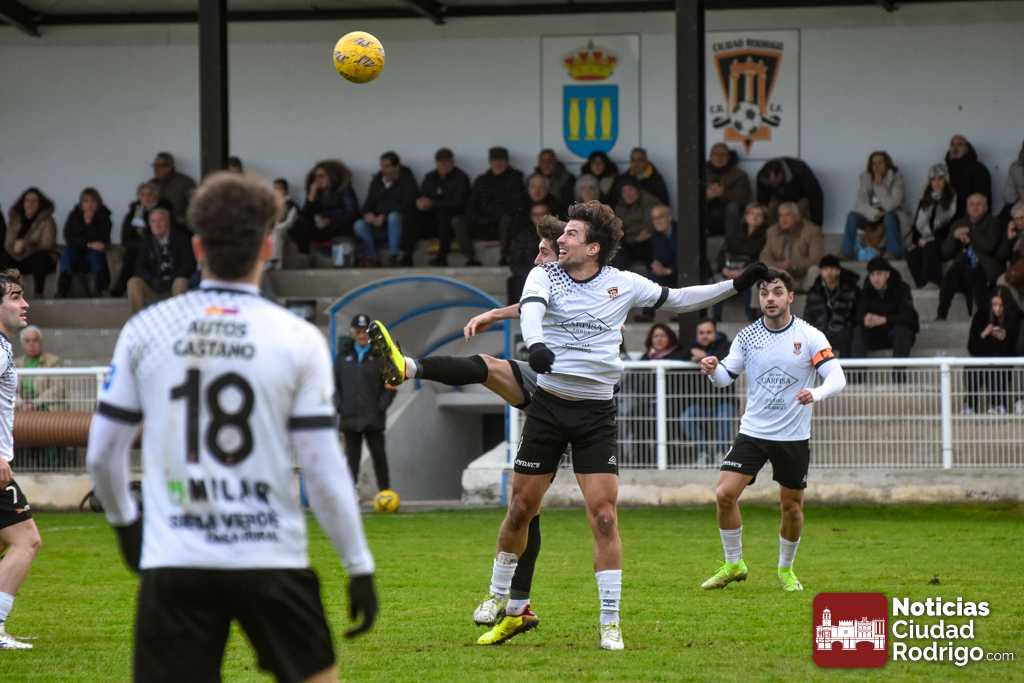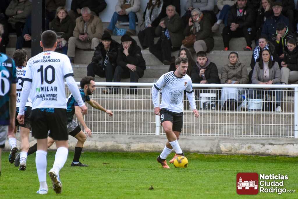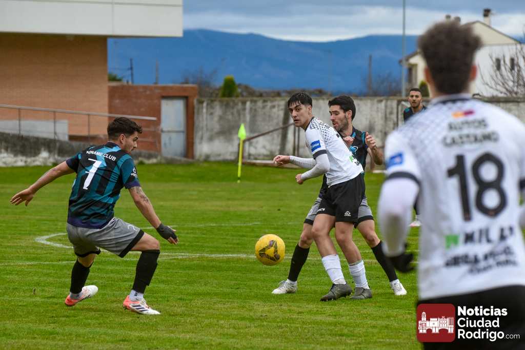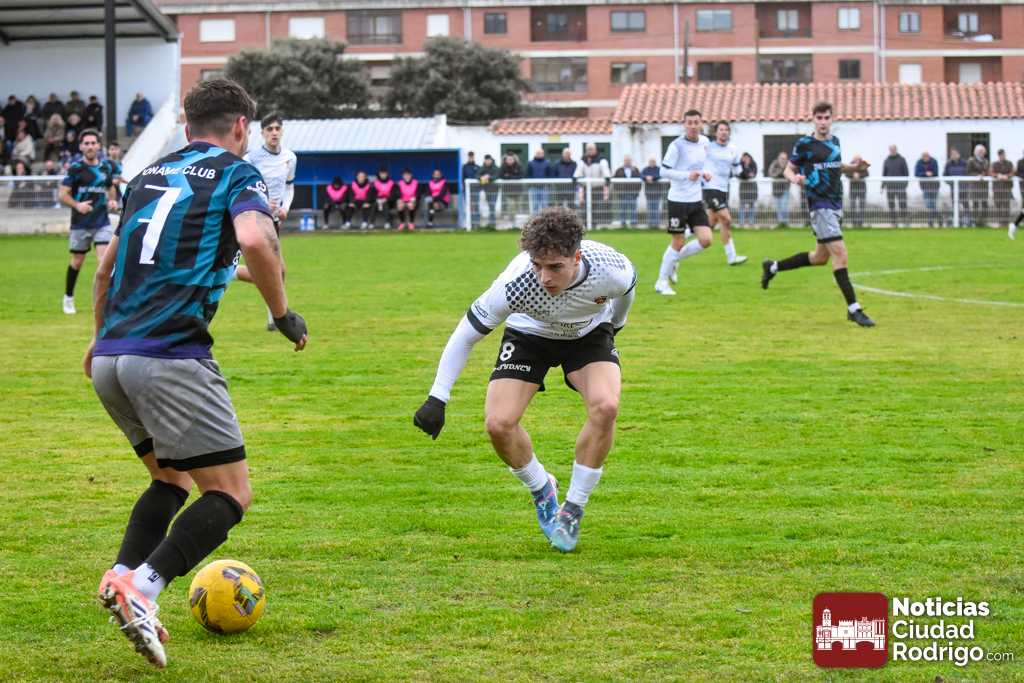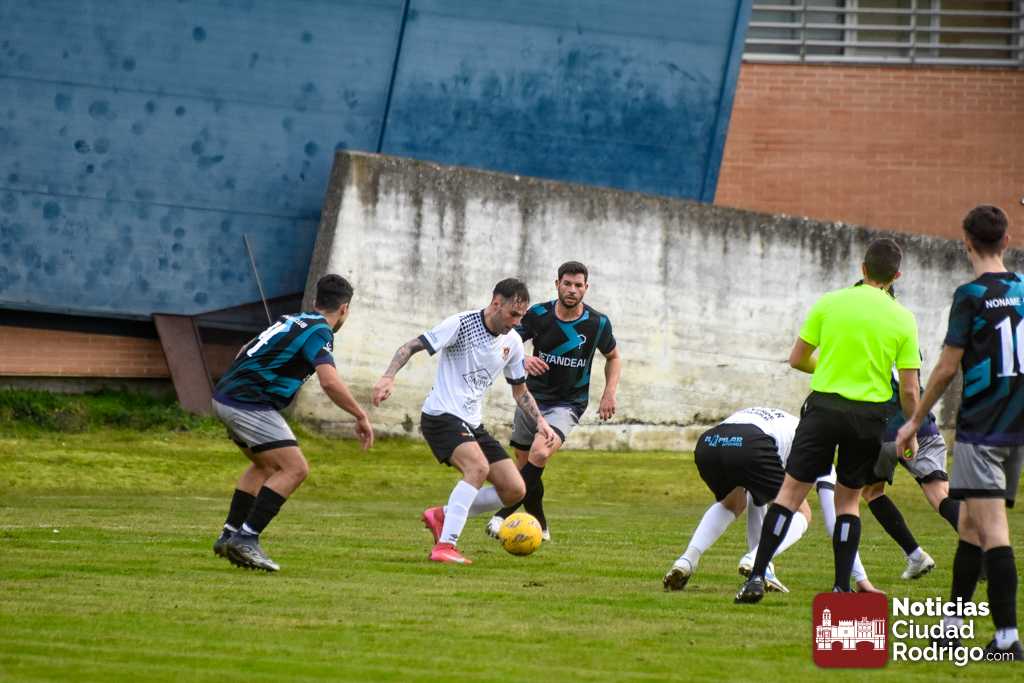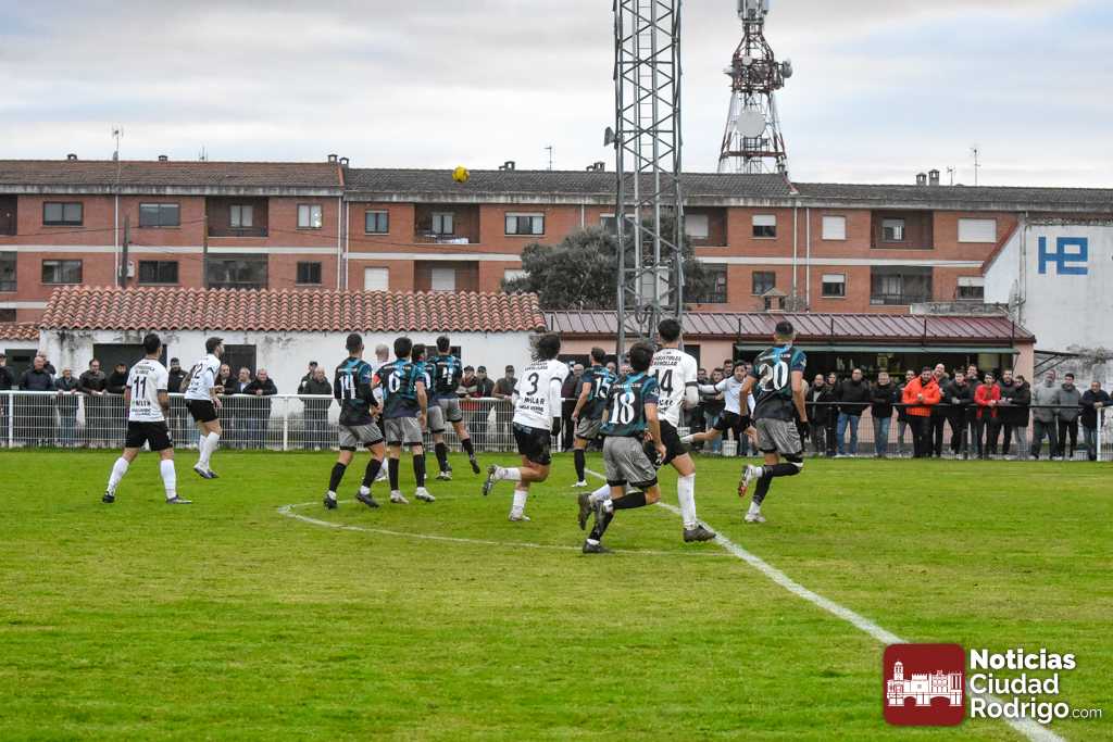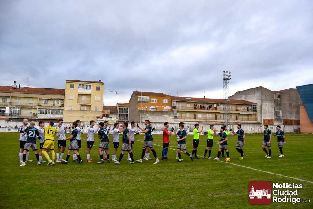 La entrada de Maza en el 60´ alivió muchas carencias en el centro del campo y el juego del equipo llegó a ser reconocible en algunos tramos y, aunque sin milagros, el Ciudad Rodrigo CF se vino arriba. Aquí al cuadro zamorano le empezó a pesar el reloj e inició una cadena de pérdidas de tiempo que no supieron cortar bien desde el trio arbitral. En el último tramo, cuando parecía que la machada se iba a consumar, Albert Diatta cazó un balón rebotado en la cocina del área y con una melé alrededor para rescatar un partido en el primer tiro a puerta del Ciudad Rodrigo CF en el encuentro (hicieron dos en total).