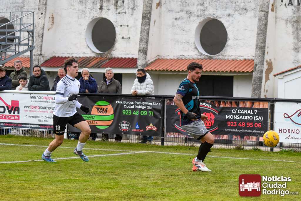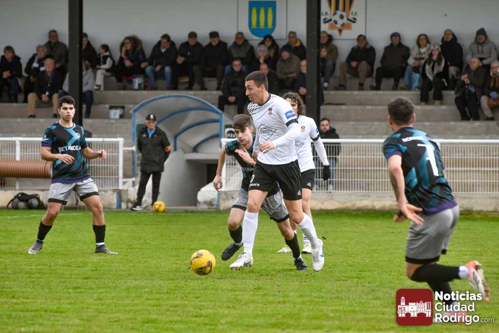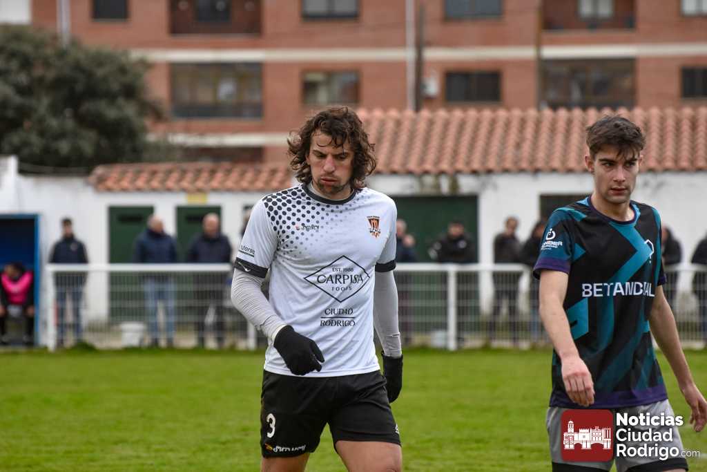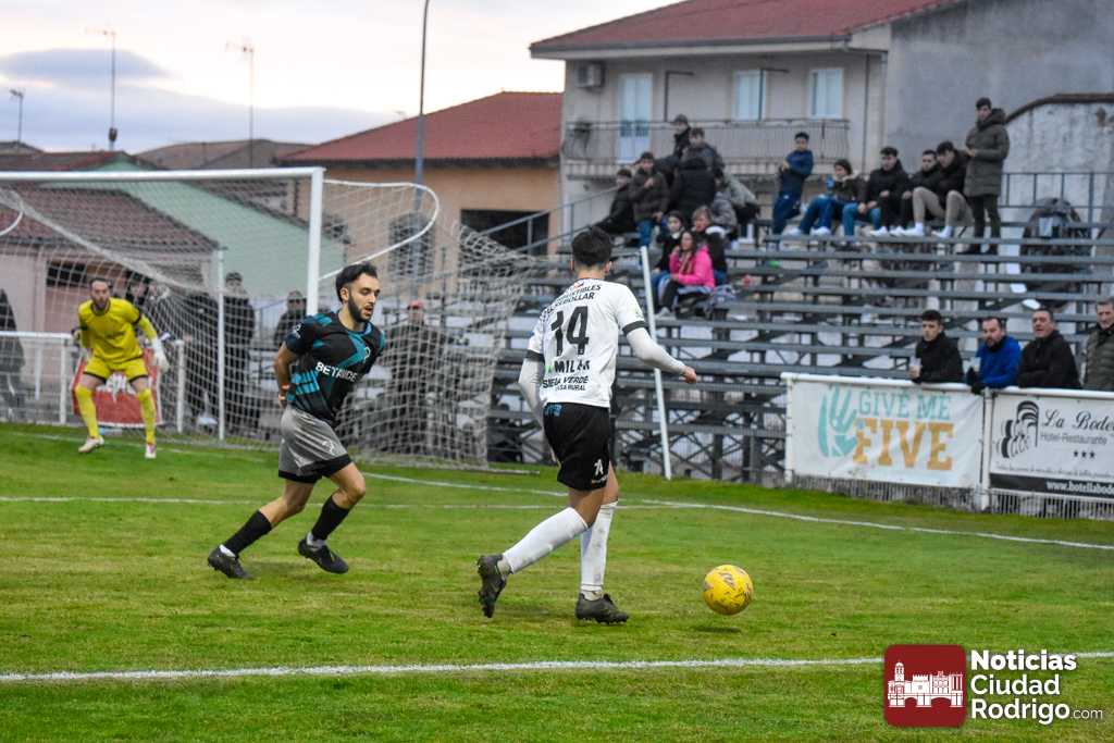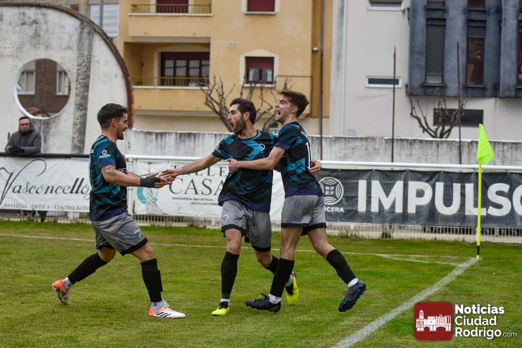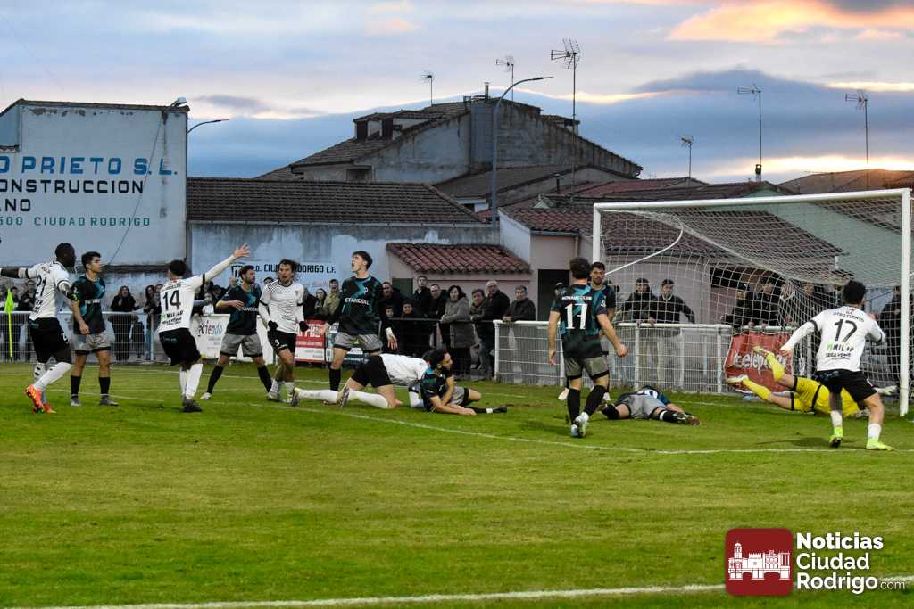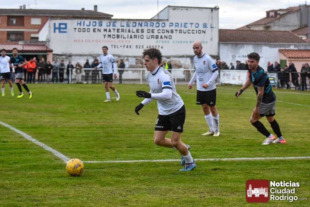El encuentro arrancó muy impreciso a nivel de juego por parte de ambos equipos, sin claridad de ideas y con mucho pelotazo. Esta imprecisión le pasó rápido factura al Ciudad Rodrigo CF que en el minuto 9 se vio por detrás en el marcador cuando, tras una pérdida en el centro del campo, Nicolás Santiago le puso un balón entre líneas a Noel Martín para que batiera a Pipo con un disparo cruzado. 0-1 y la «trampa» de la que escribimos aquí en la previa se confirmaba.