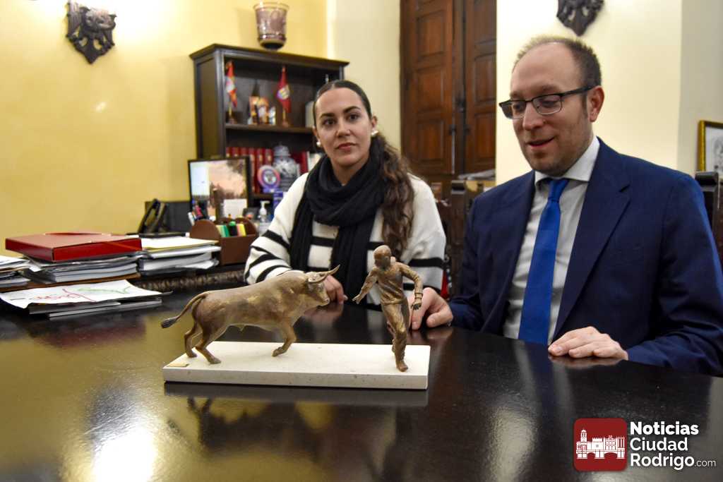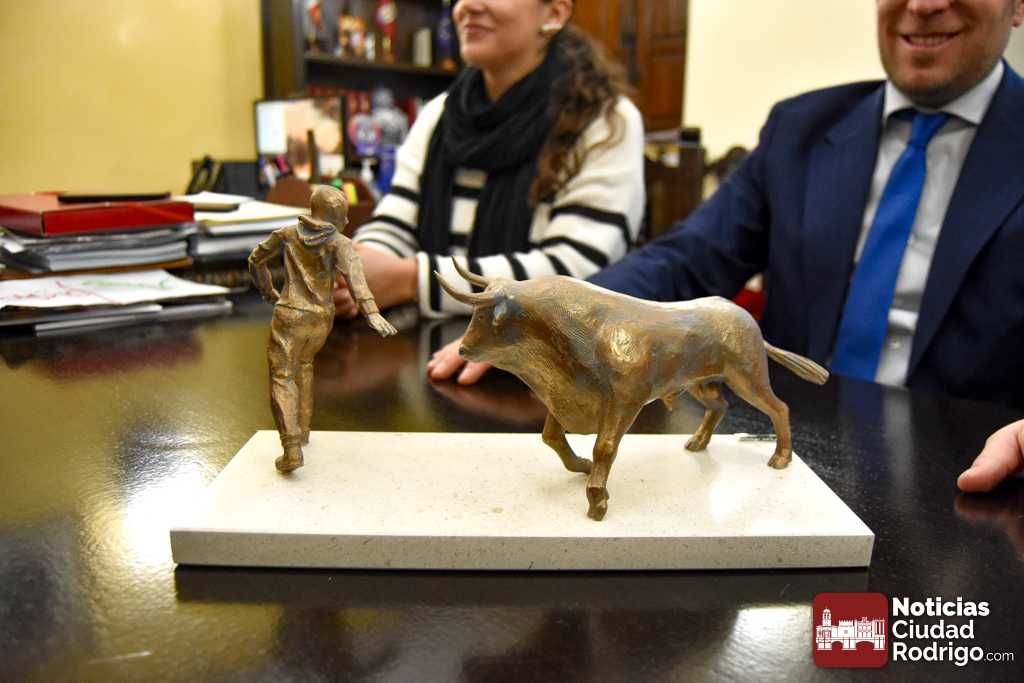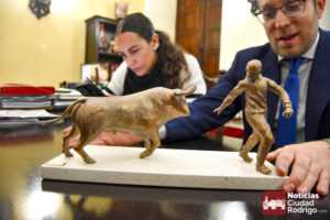 Tras la presentación de este programa, el Alcalde Marcos Iglesias, acompañado por los concejales Ramón Sastre y Paola Martín Muñoz, mostró una reproducción en miniatura de lo que será el Monumento elaborado por el mirobrigense Sergio Alonso Moro, que representa la estampa de un encierro.