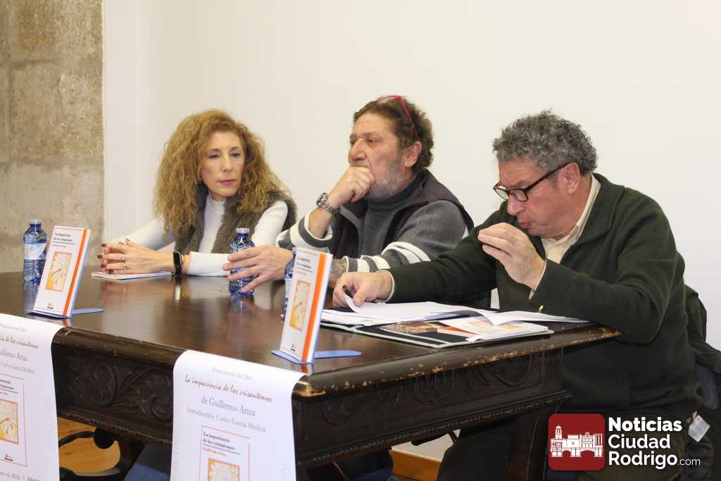 El escritor Guillermo Ariza ha presentado en Ciudad Rodrigo su sexto libro. En esta ocasión se trata de un libro de poemas, el primero publicado en su trayectoria literaria. La nueva obra se llama «La impaciencia de los crisantemos» y ha sido presentada esta tarde en la Casa Municipal de Cultura mirobrigense con la participación en el acto de la concejal de Cultura, Belén Barco y el escritor, investigador y pintor Carlos García Medina. Entre el público también se encontraba el concejal José Manuel Jerez.
