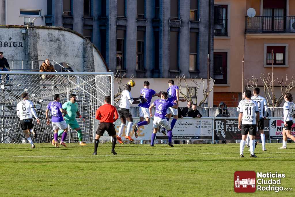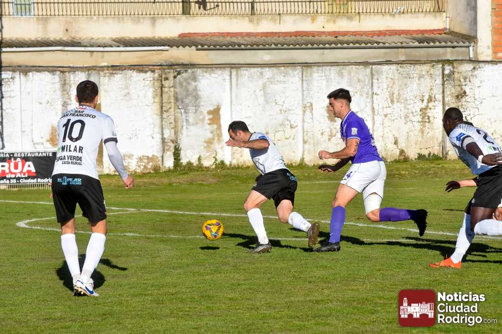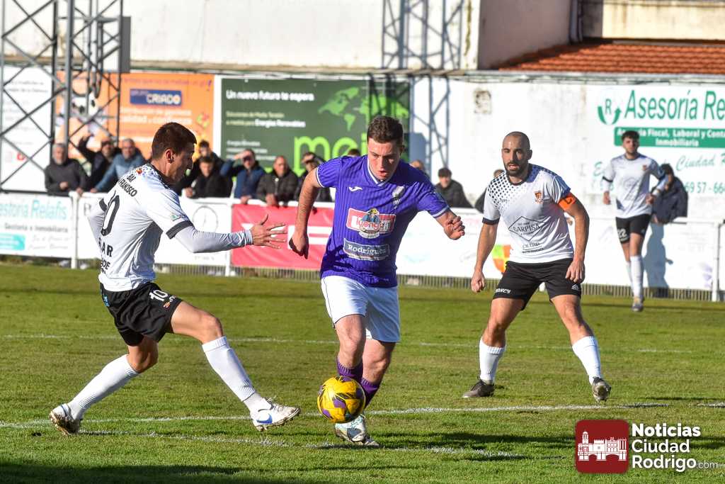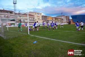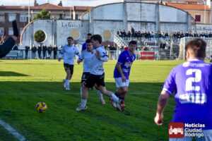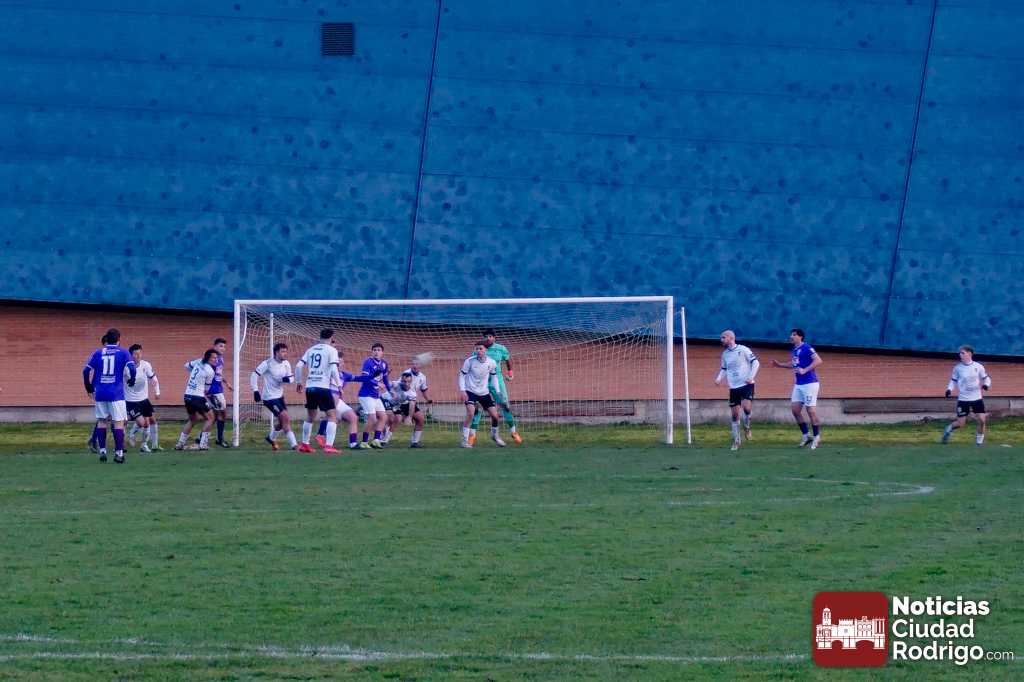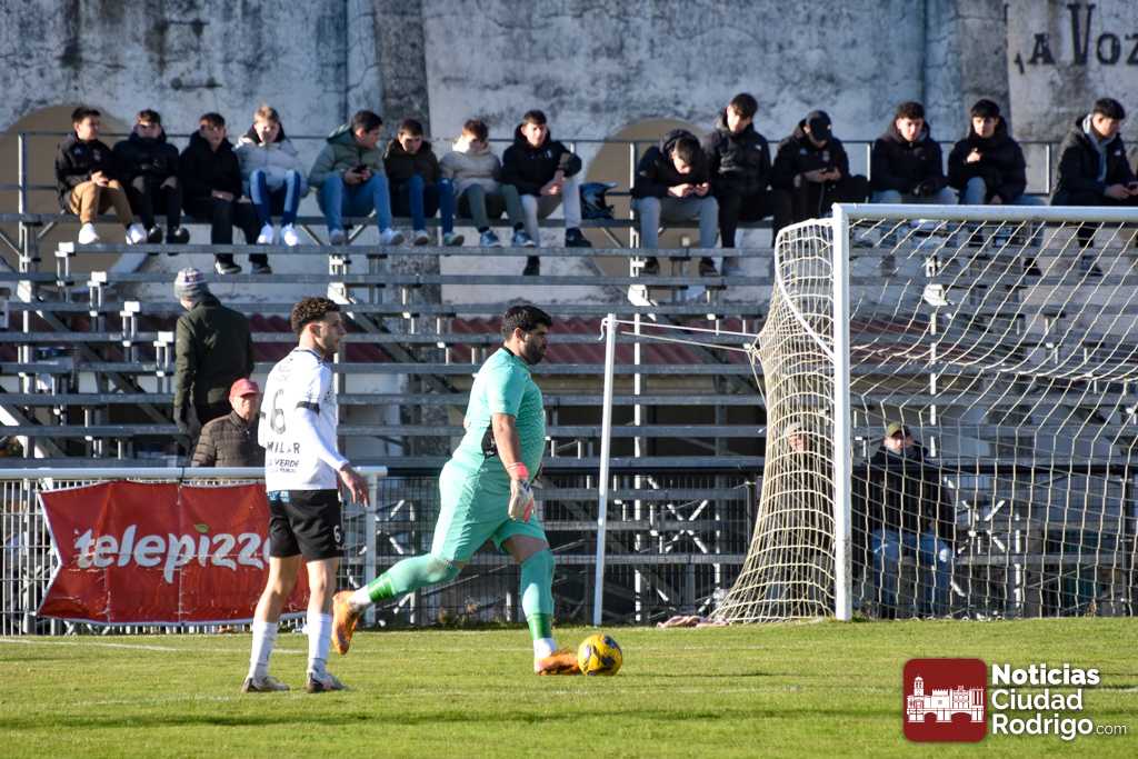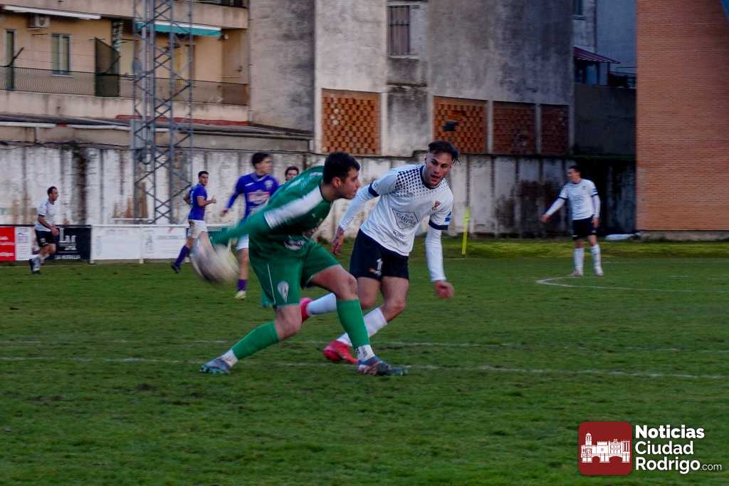 El primer tiempo fue muy disputado por parte de ambos conjuntos, que venían con una necesidad acuciante de puntos tras haber pinchado ambos la jornada anterior. Fue más valiente el Ciudad Rodrigo CF en el sentido ofensivo y fruto de ello llegó el 1-0 en el minuto 39, obra de Víctor Abajo tras aprovechar un barullo dentro del área.