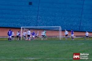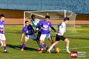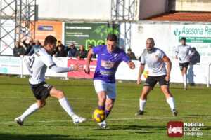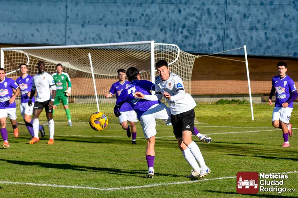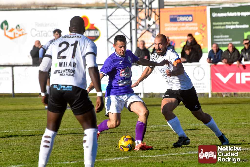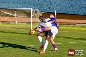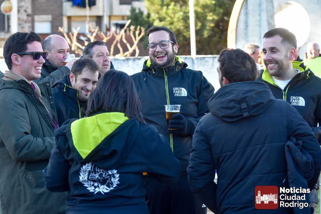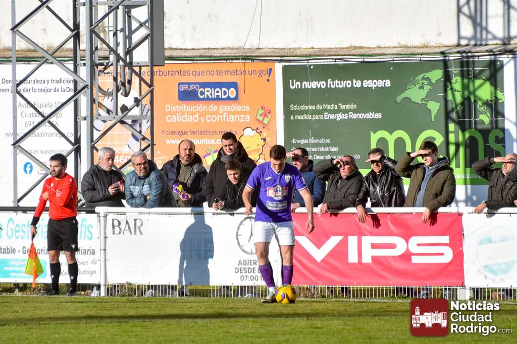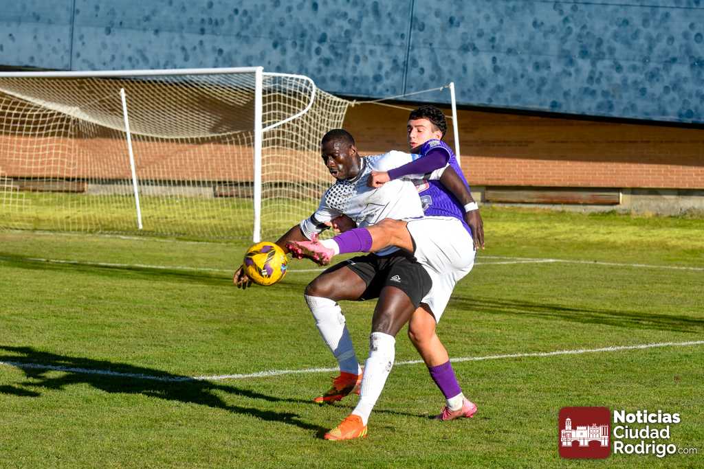 El primer tiempo fue muy disputado por parte de ambos conjuntos, que venían con una necesidad acuciante de puntos tras haber pinchado ambos la jornada anterior. Fue más valiente el Ciudad Rodrigo CF en el sentido ofensivo y fruto de ello llegó el 1-0 en el minuto 39, obra de Víctor Abajo tras aprovechar un barullo dentro del área.