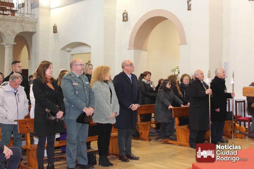 En la iglesia han estado presentes el teniente alcalde del Ayuntamiento de Ciudad Rodrigo, Ramón Sastre y varios concejales: Vanesa García, Belén Barco, Paola Martín, Víctor Gómez y Carmen Lorenzo. Además, también ha asistido el capitán de la Guardia Civil Pablo Gatell, así como el presidente de la cofradía de San Antón en la parroquia de San Andrés, Damián, y la mayordoma de San Antón este año en la parroquia de San Andrés, Yolanda Hernández.