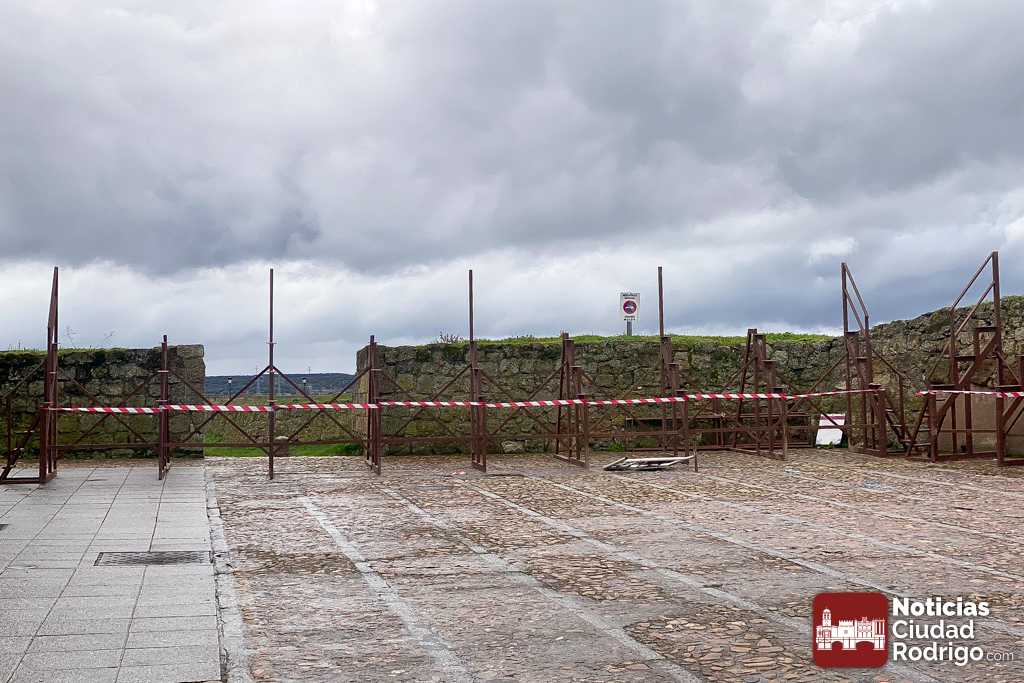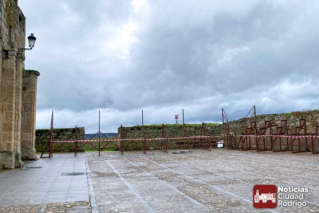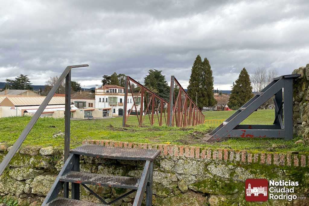 Se han instalado los graderíos, así como el conocido como «Puente de Aris», que une ambos lados del foso en ese tramo