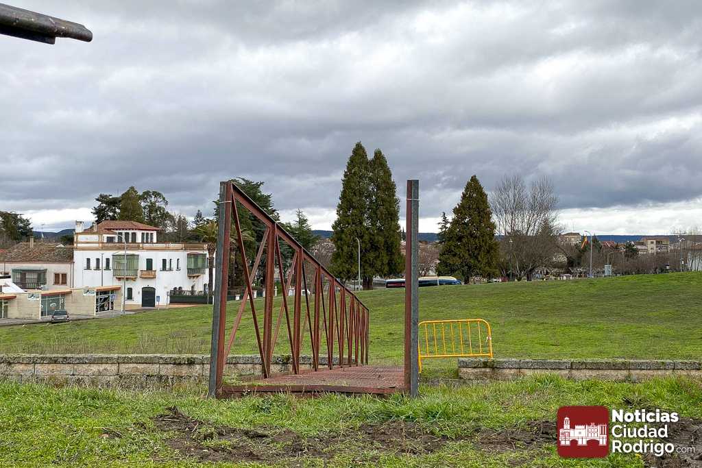 Faltan 23 días para el inicio del Carnaval del Toro 2026 y han comenzado las labores de instalación de diferentes elementos propios en el recorrido. En este caso, ha sido la zona del Registro la primera intervenida, al colocarse durante esta mañana los graderíos y el conocido como «Puente de Aris», que une ambos lados del foso en ese tramo y que ofrece un atajo desde el Registro al recinto ferial.